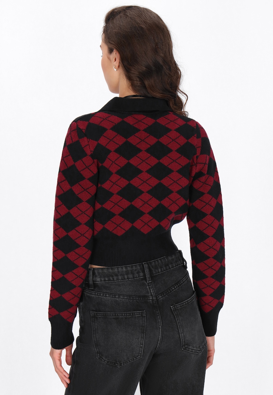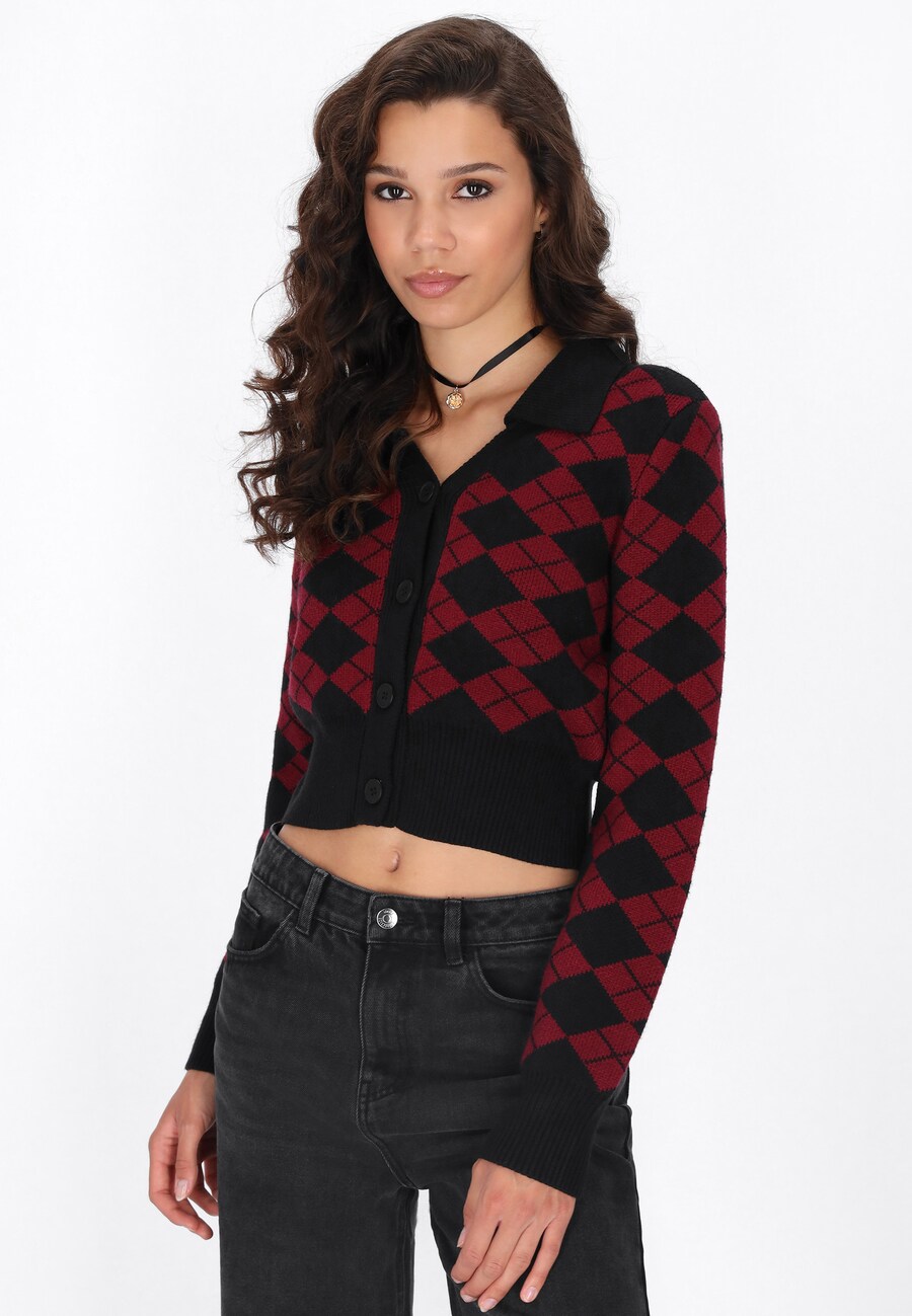 Вязаный кардиган myMo ROCKS, бордовый/черный