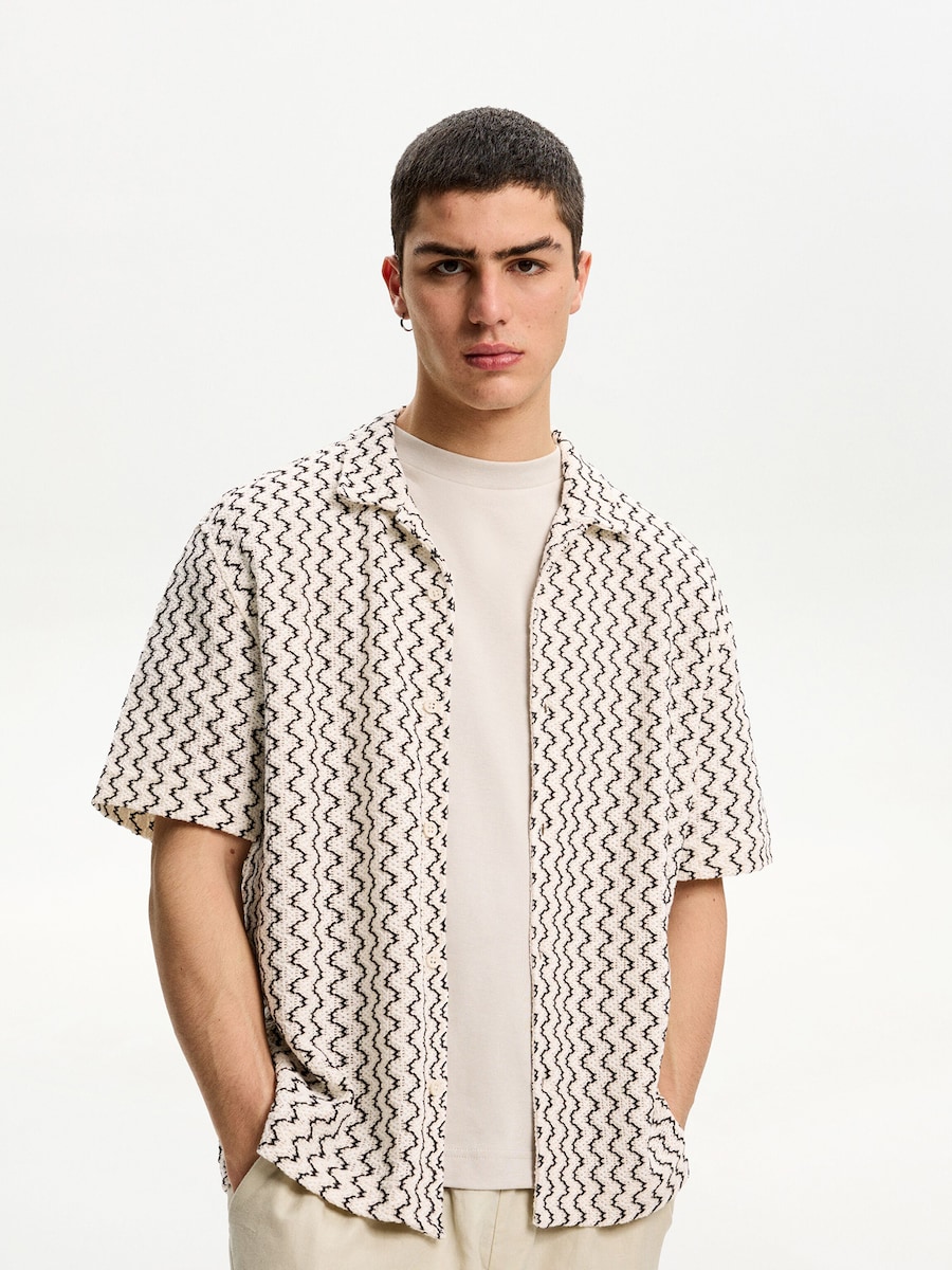 Рубашка на пуговицах Comfort fit Bershka, экрю 3 334₽