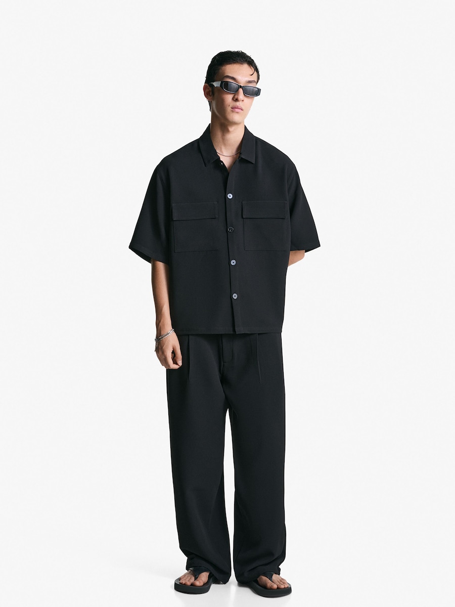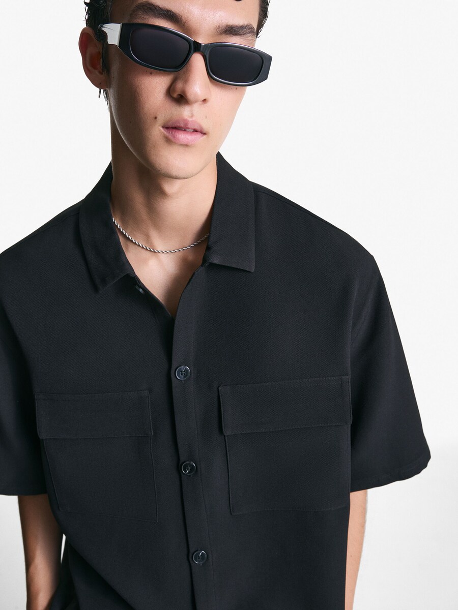 Рубашка на пуговицах Comfort fit Bershka, черный 3 566₽