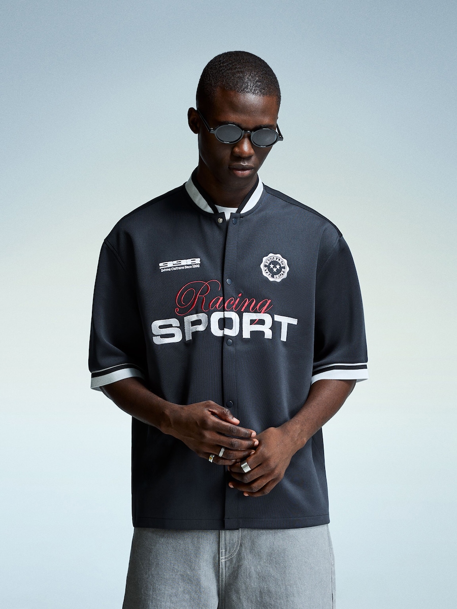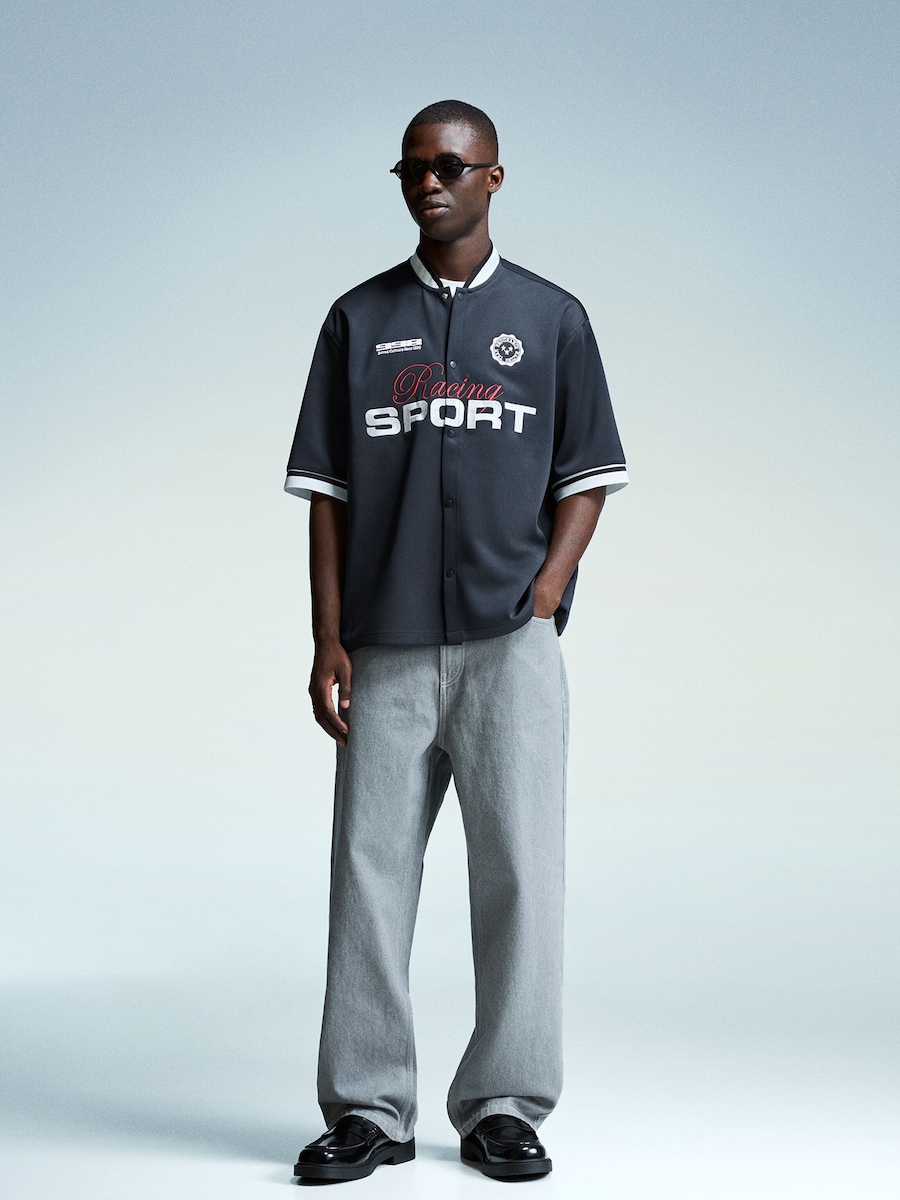 Рубашка на пуговицах Comfort fit Bershka, темно-синий 2 793₽