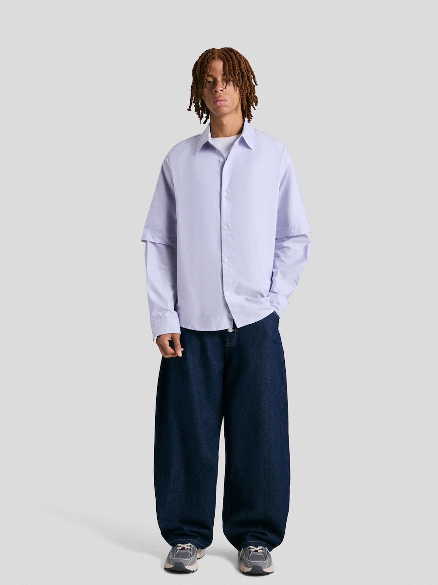 Рубашка на пуговицах Comfort fit Bershka, пыльно-синий