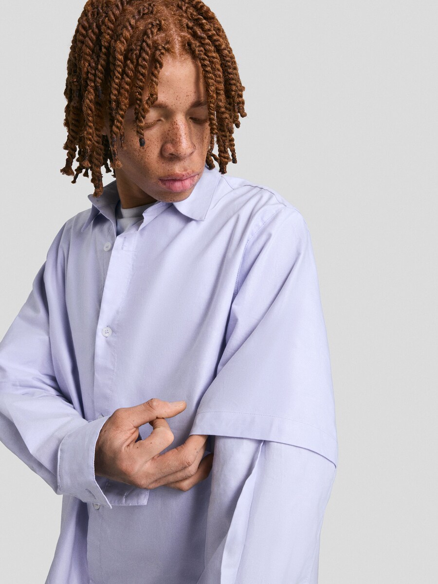Рубашка на пуговицах Comfort fit Bershka, пыльно-синий 3 330₽