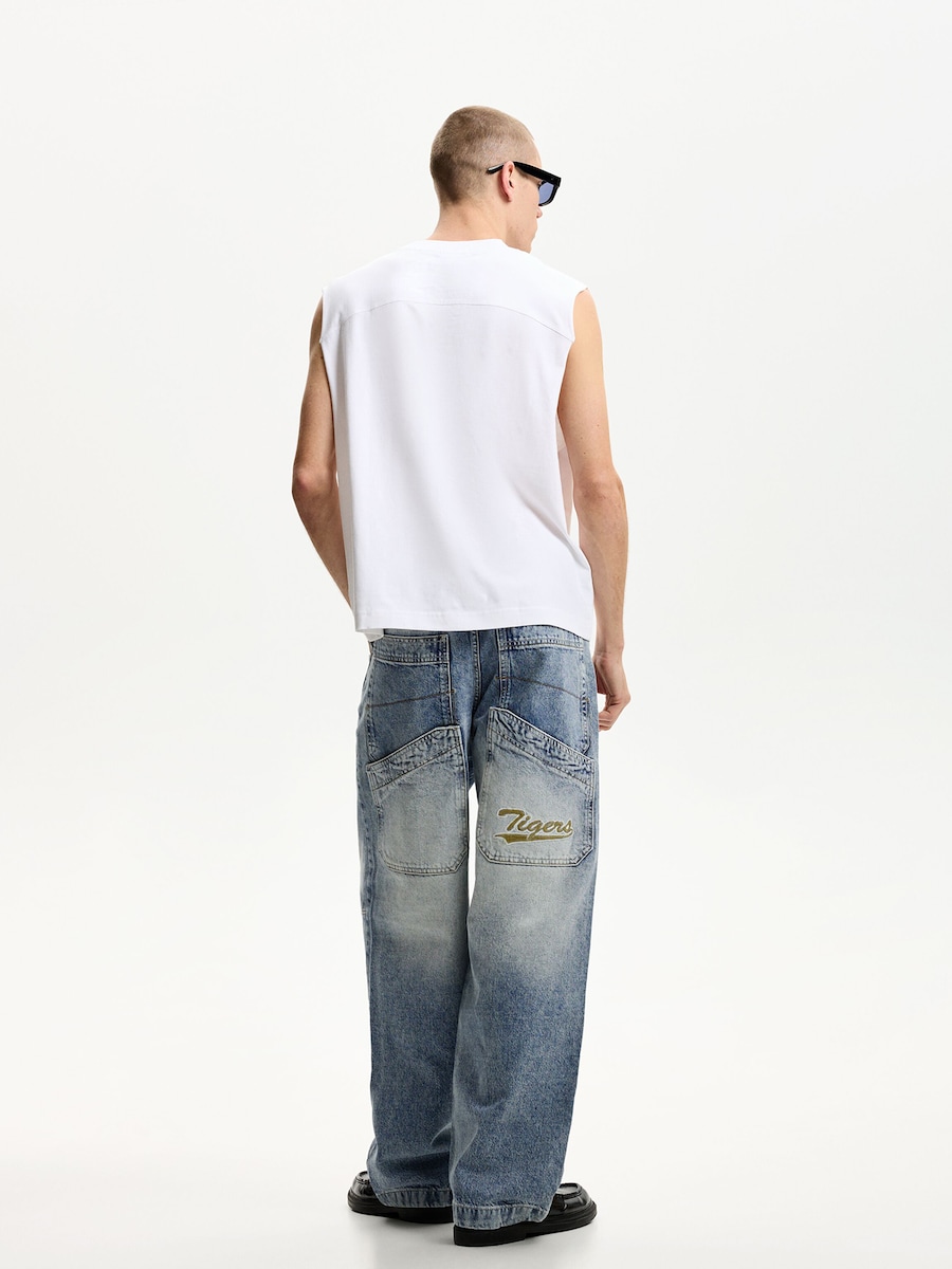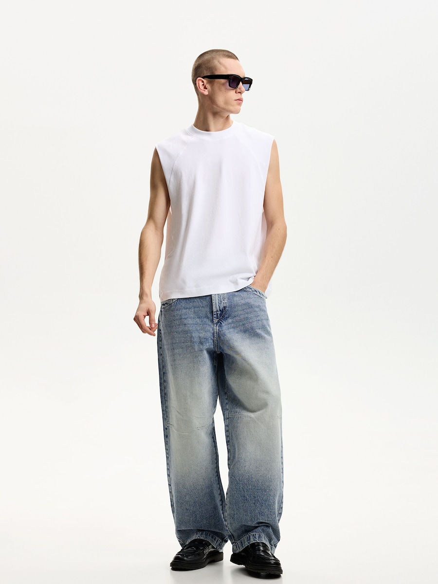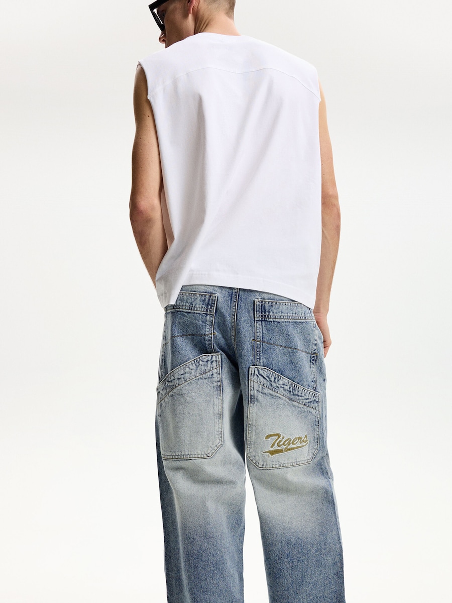 Джинсы с широкими штанинами Bershka, Blue Denim