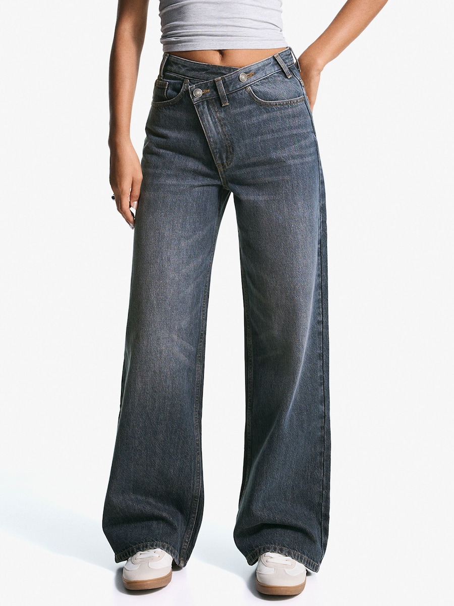 Джинсы с широкими штанинами Bershka, Blue Denim