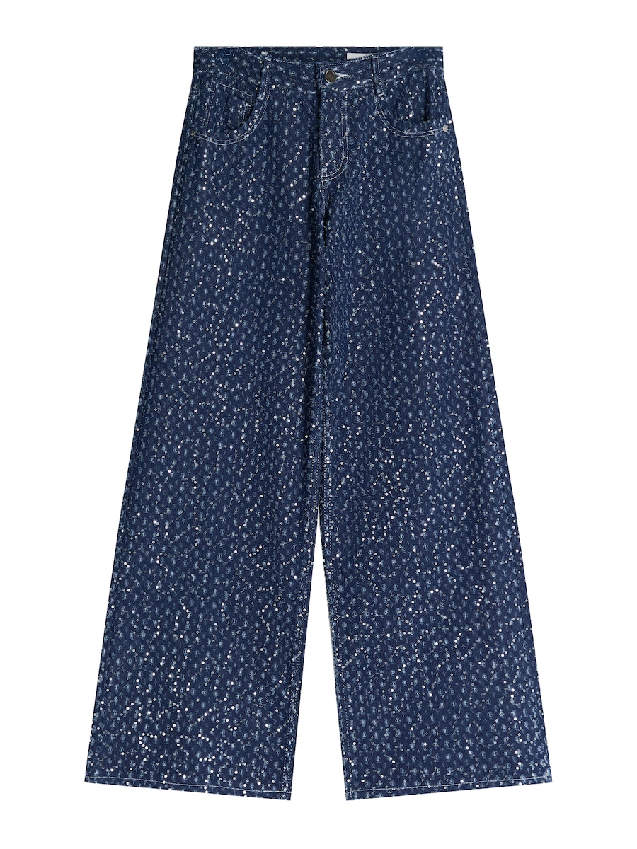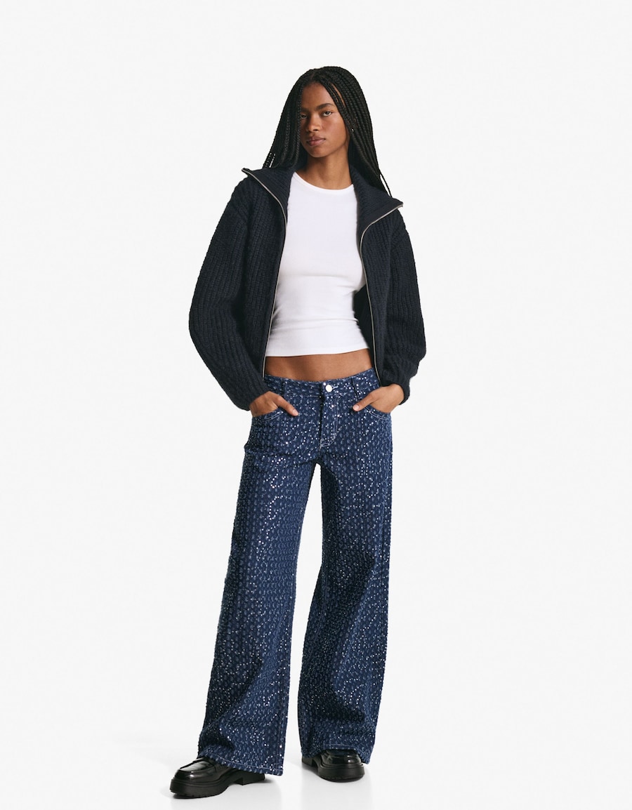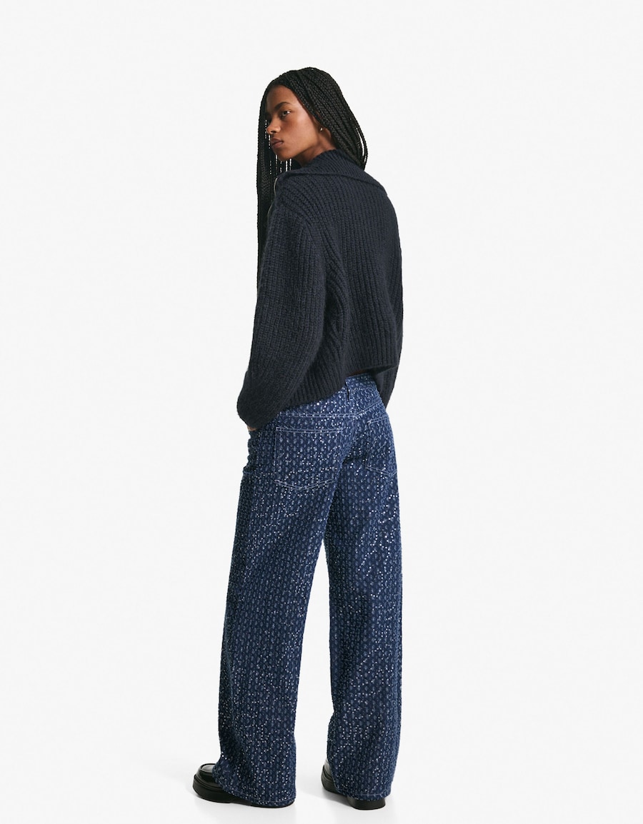 Джинсы с широкими штанинами Bershka, темно-синий 8 080₽