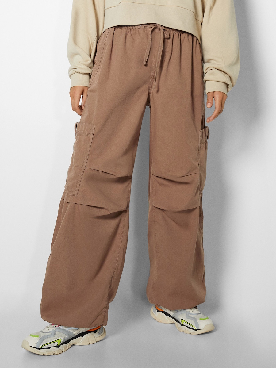 Широкие брюки Bershka, коричневый