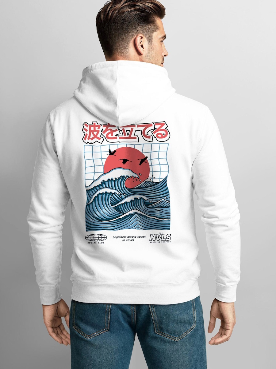 Толстовка с капюшоном на молнии Neverless Japan Wave, белый 9 697₽