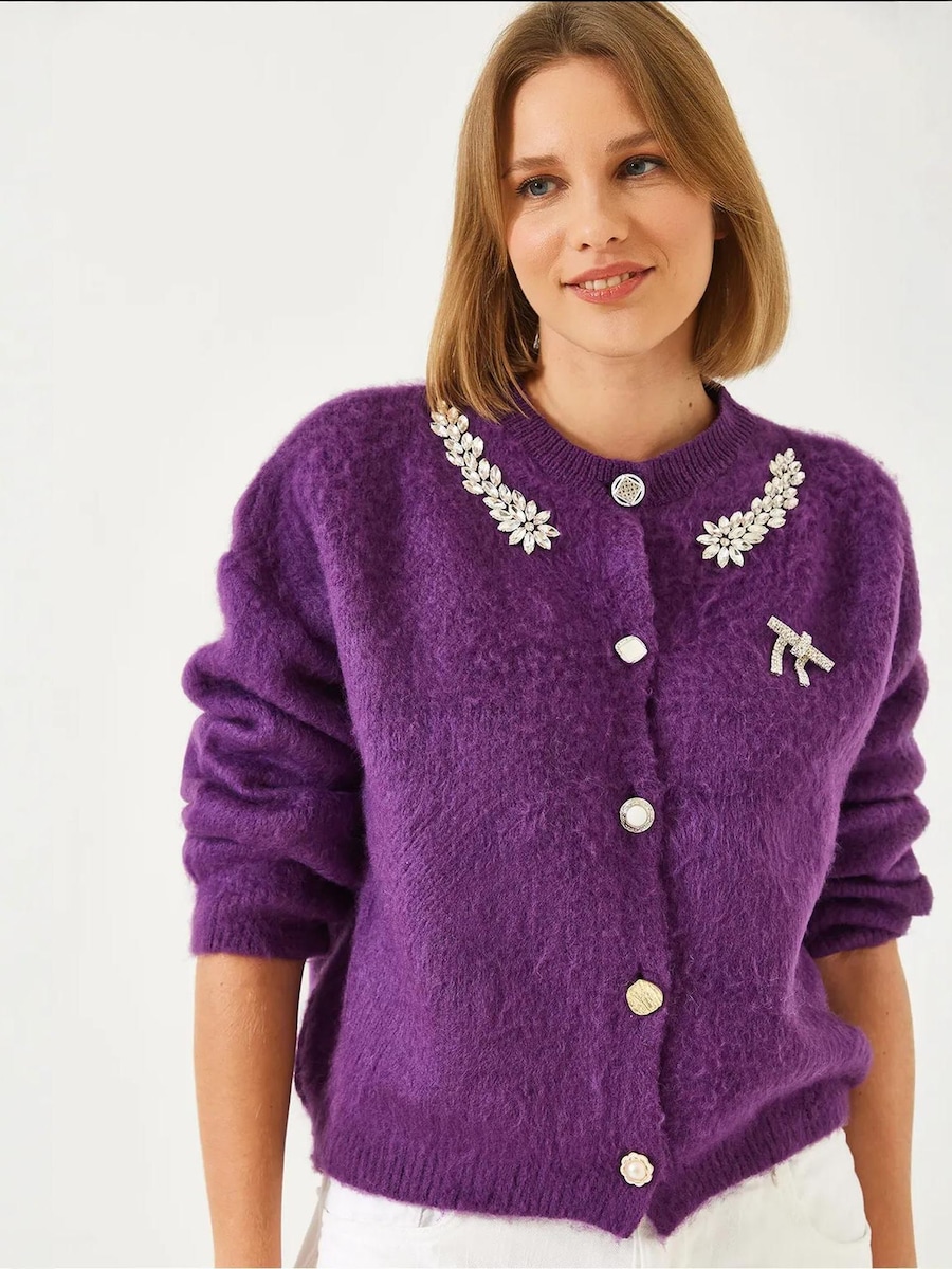 Вязаный кардиган Bianco Lucci, темно-фиолетовый