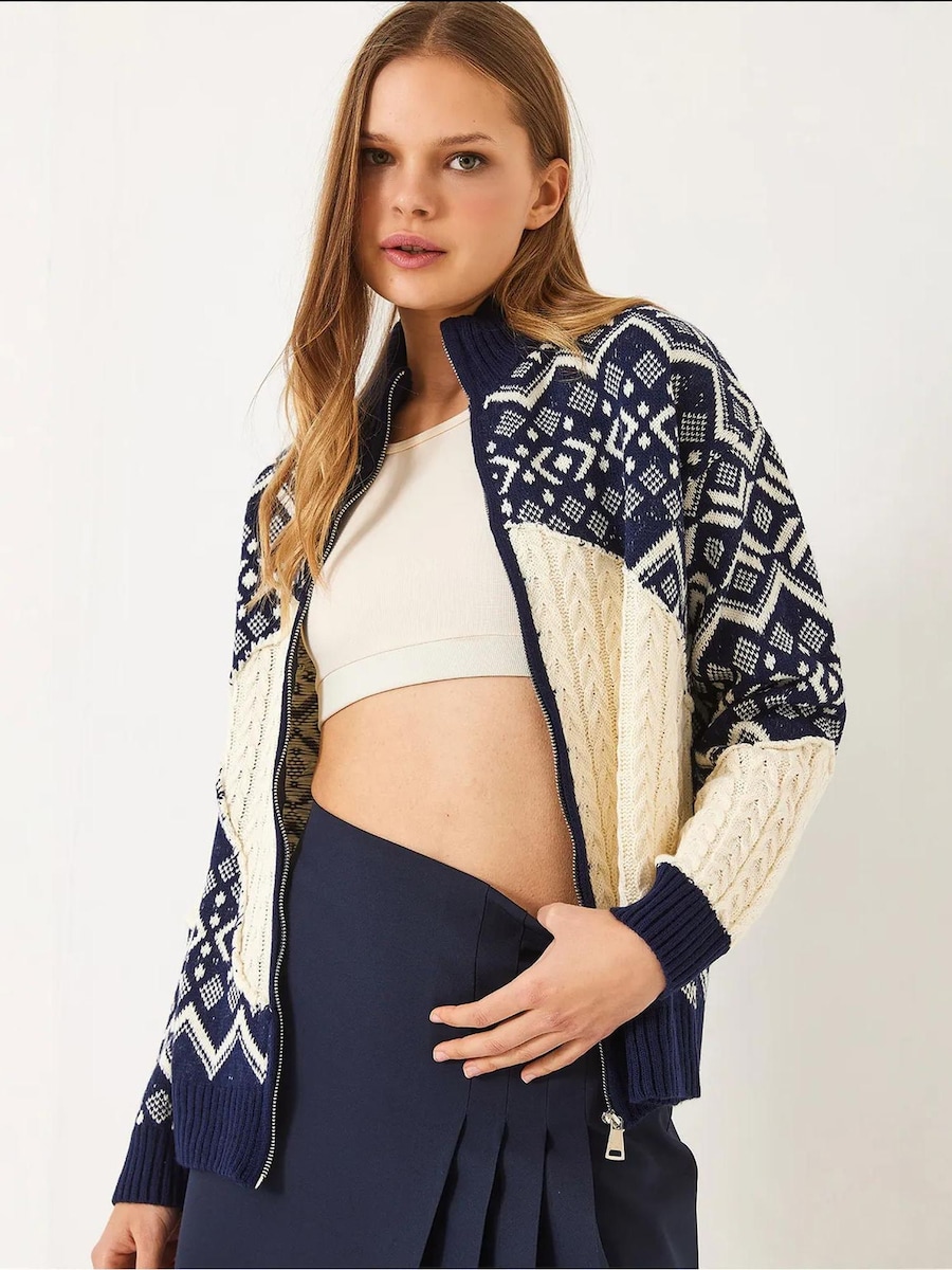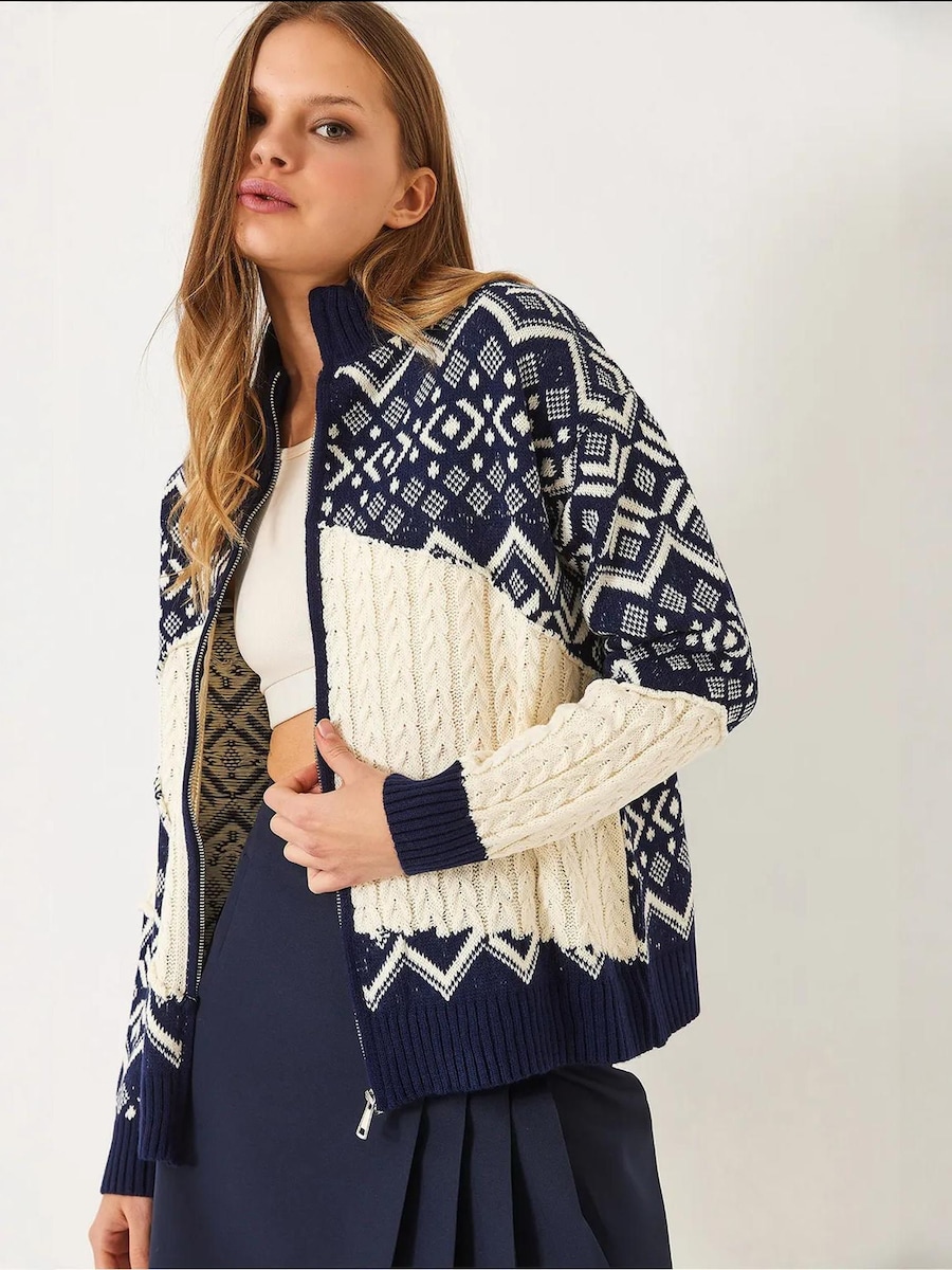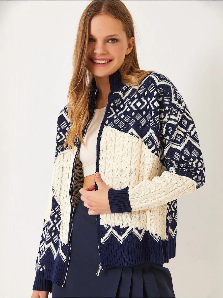 Вязаный кардиган Bianco Lucci, Dark Blue/Natural White