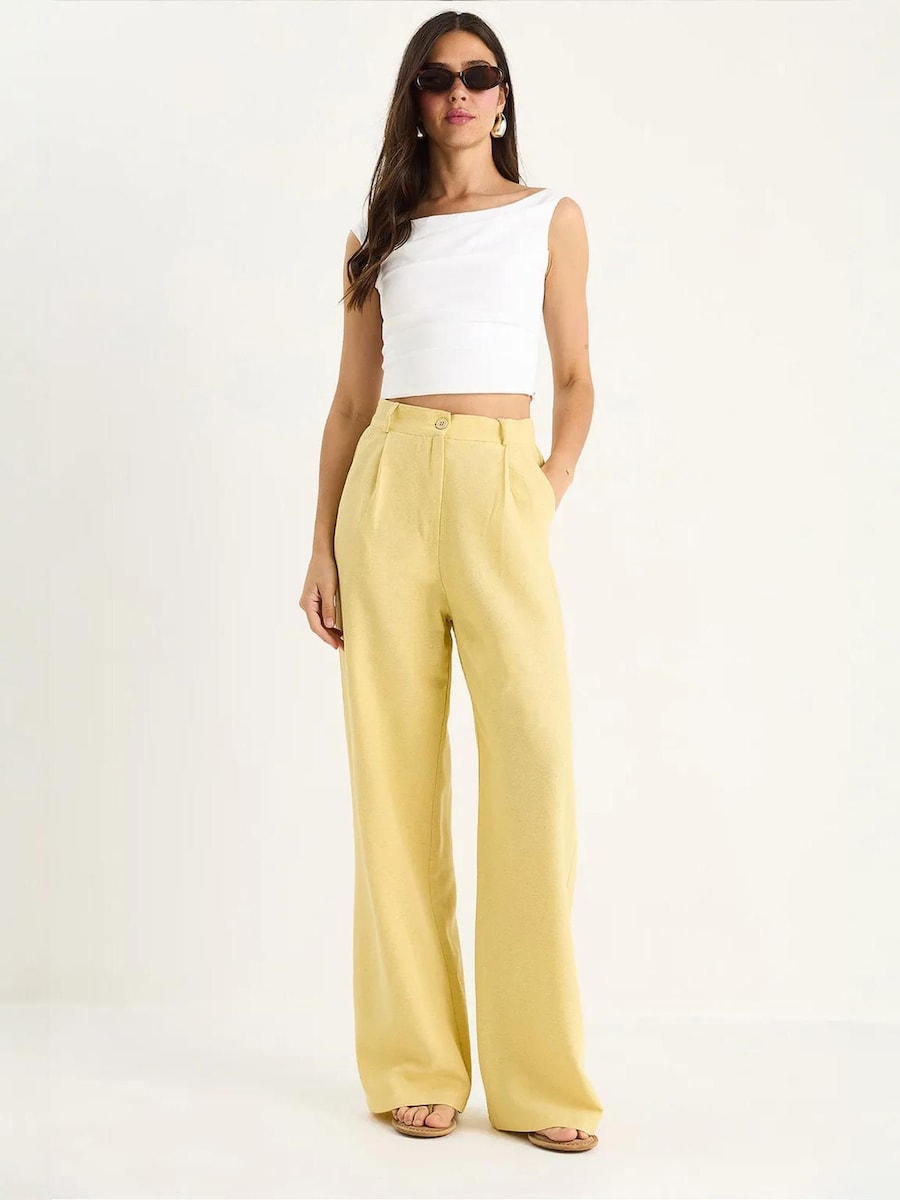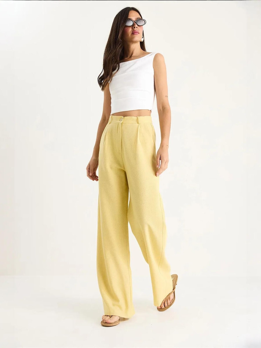 Широкие брюки со складками спереди Bianco Lucci, желтый