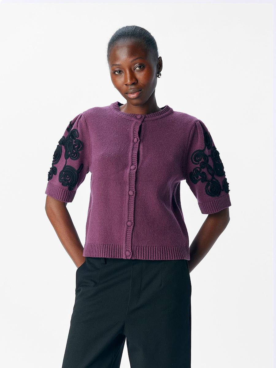 Вязаный кардиган OBJECT OBJJane, темно-фиолетовый