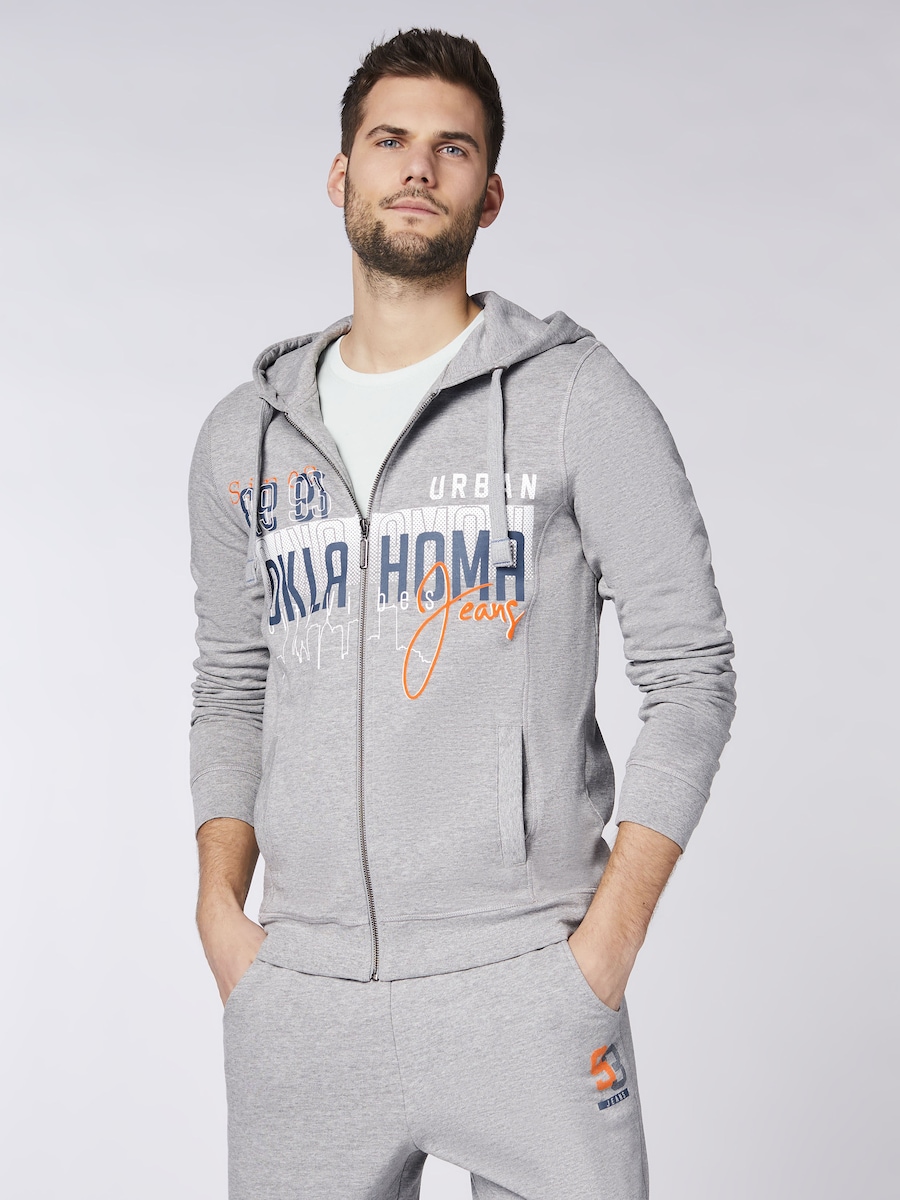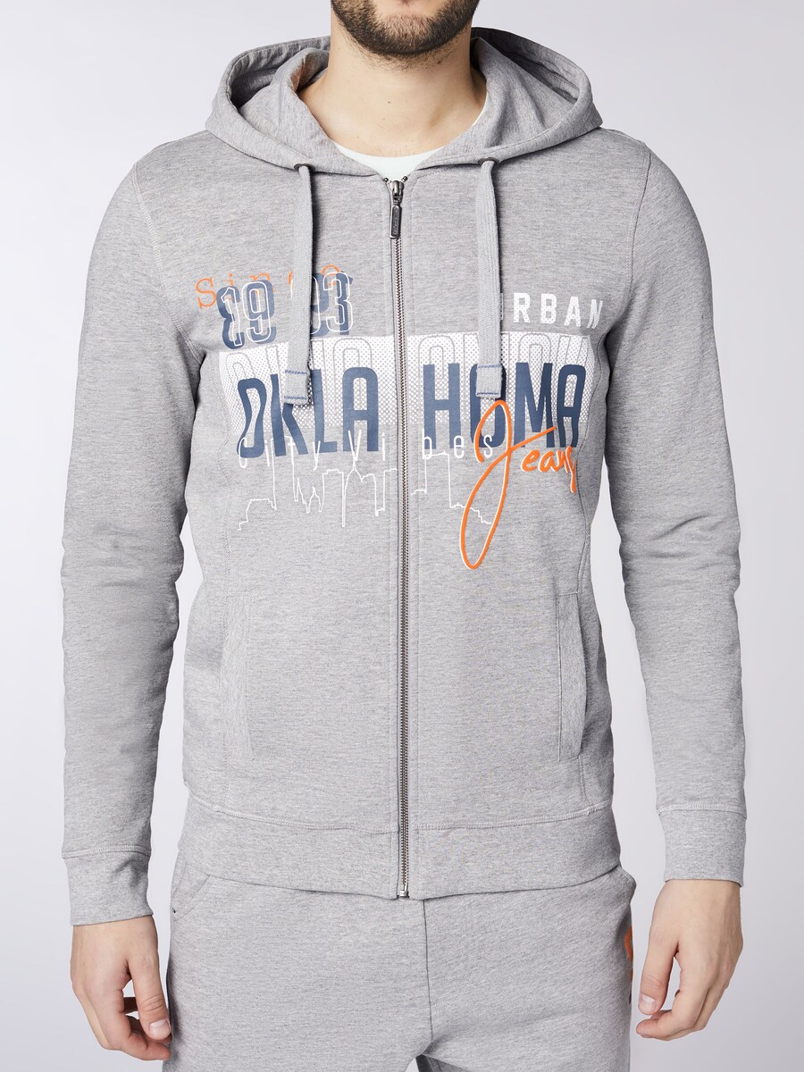 Толстовка с капюшоном на молнии Oklahoma Jeans, светло-серый