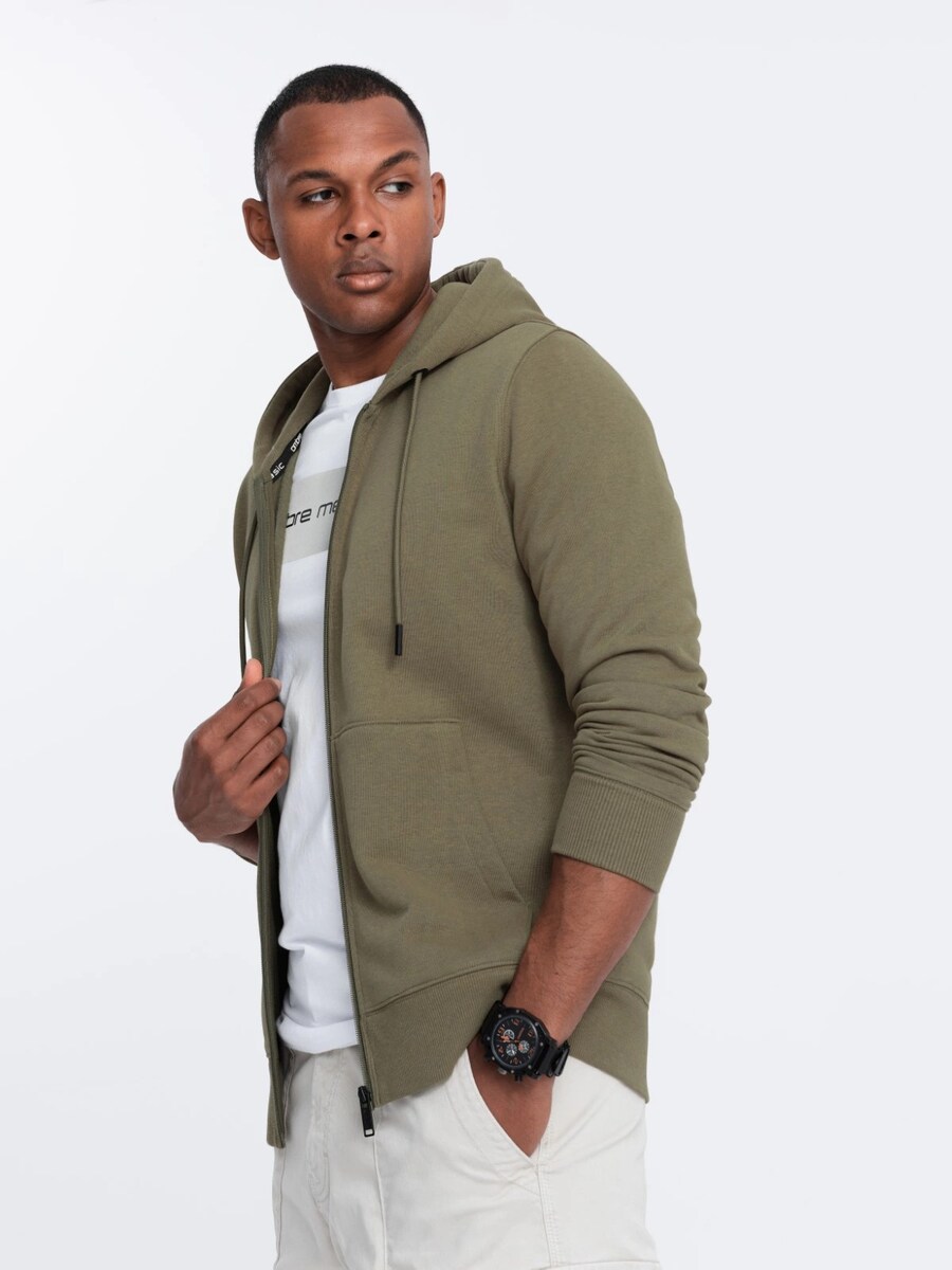 Толстовка с капюшоном на молнии Ombre OM-SSBZ-0160, оливковый