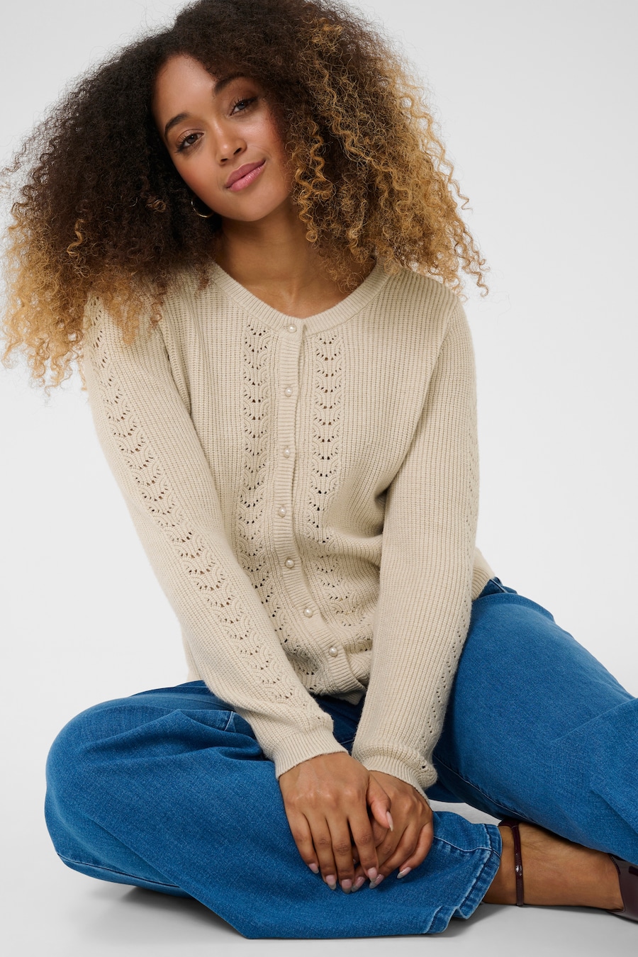 Вязаный кардиган Cream Dela, бежевый