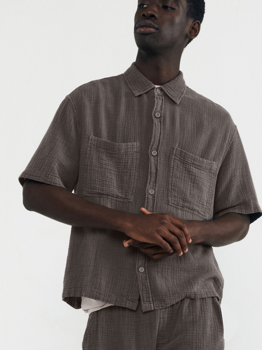 Рубашка на пуговицах Comfort fit Pull&Bear, темно-серый 3 412₽