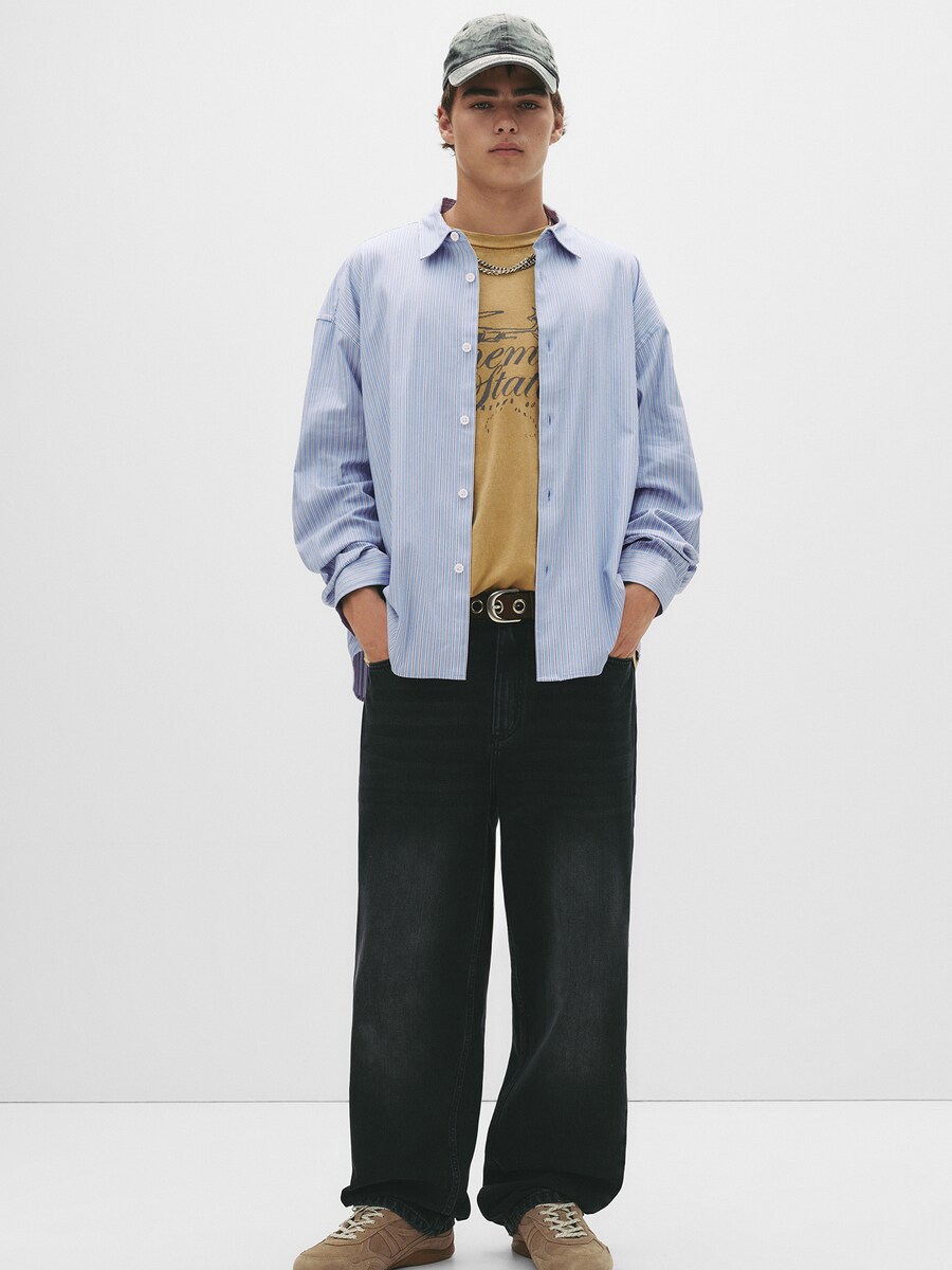 Рубашка на пуговицах Comfort fit Pull&Bear, светло-голубой