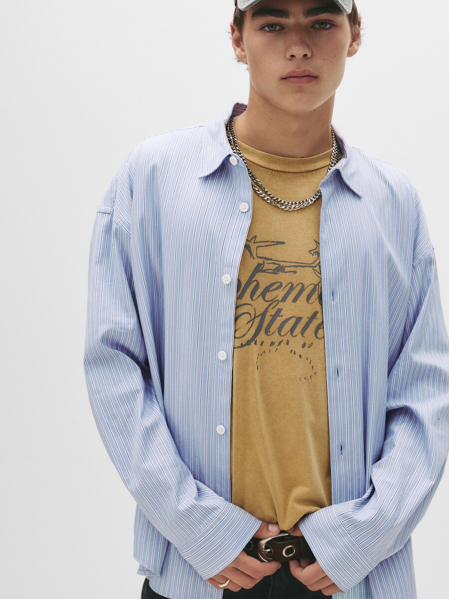 Рубашка на пуговицах Comfort fit Pull&Bear, светло-голубой 5 223₽