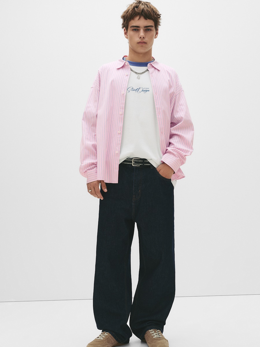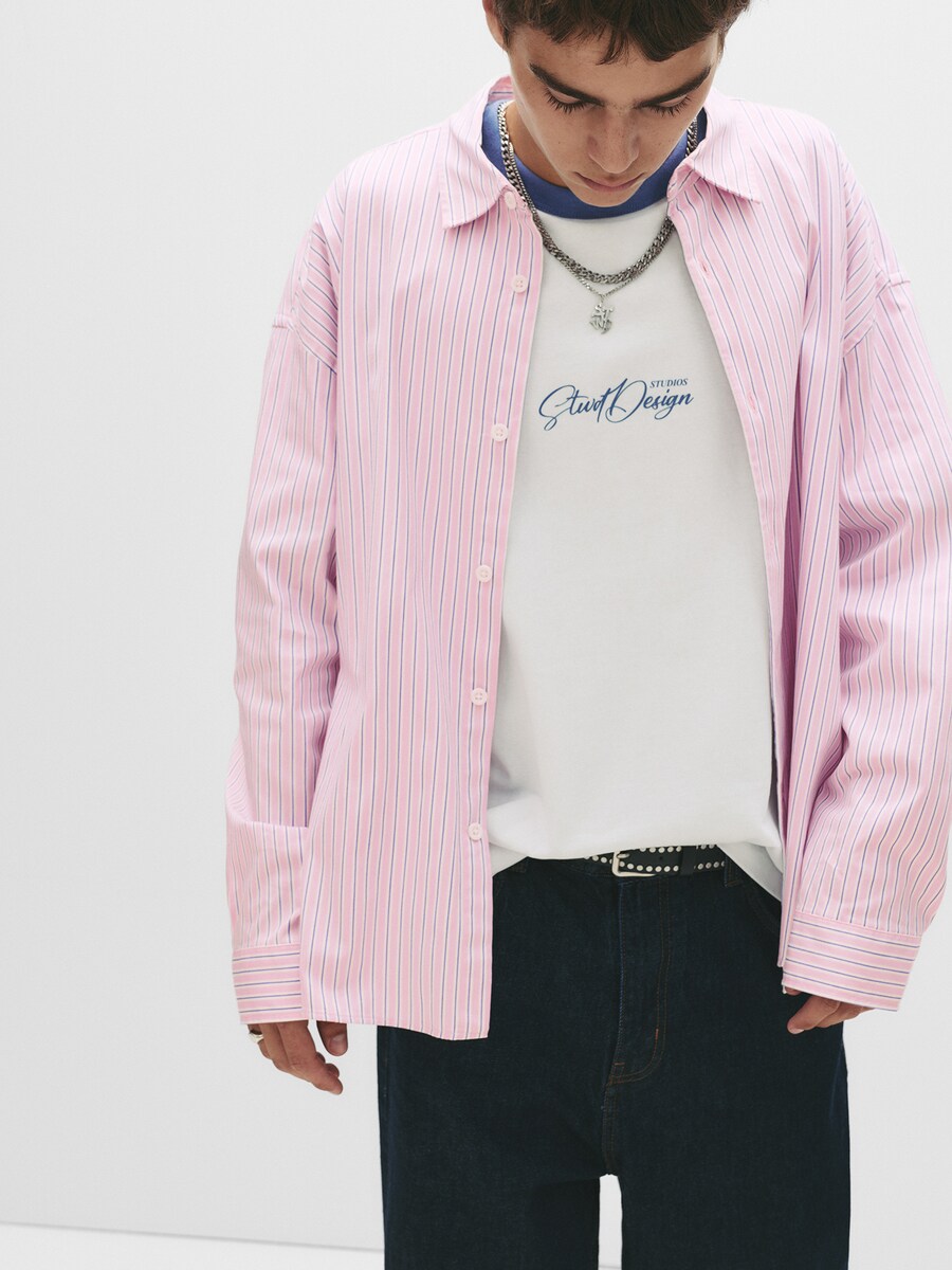 Рубашка на пуговицах Comfort fit Pull&Bear Camisa, розовый 2 945₽