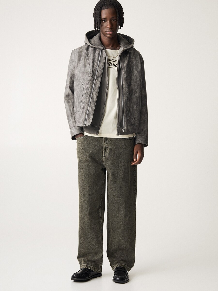 Джинсы с широкими штанинами Pull&Bear, хаки