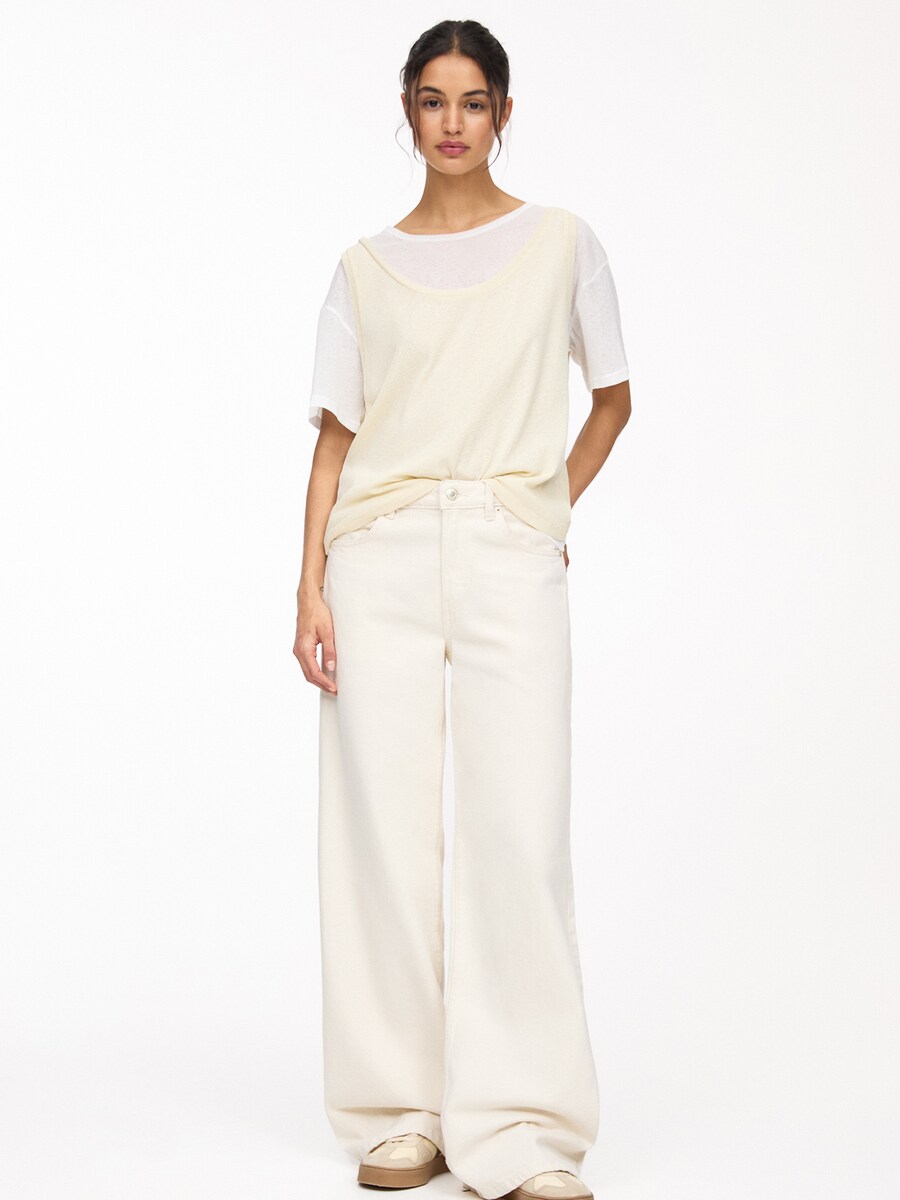 Джинсы с широкими штанинами Pull&Bear, экрю