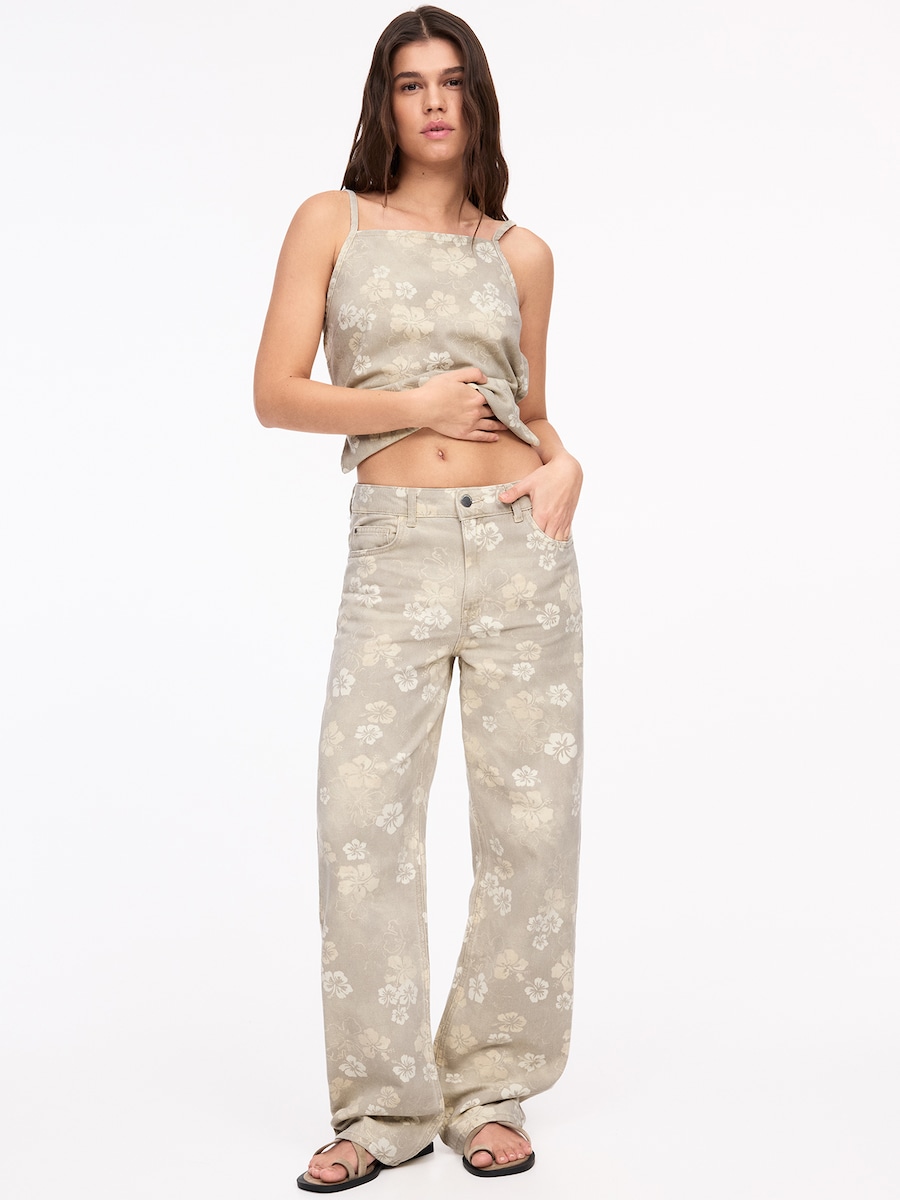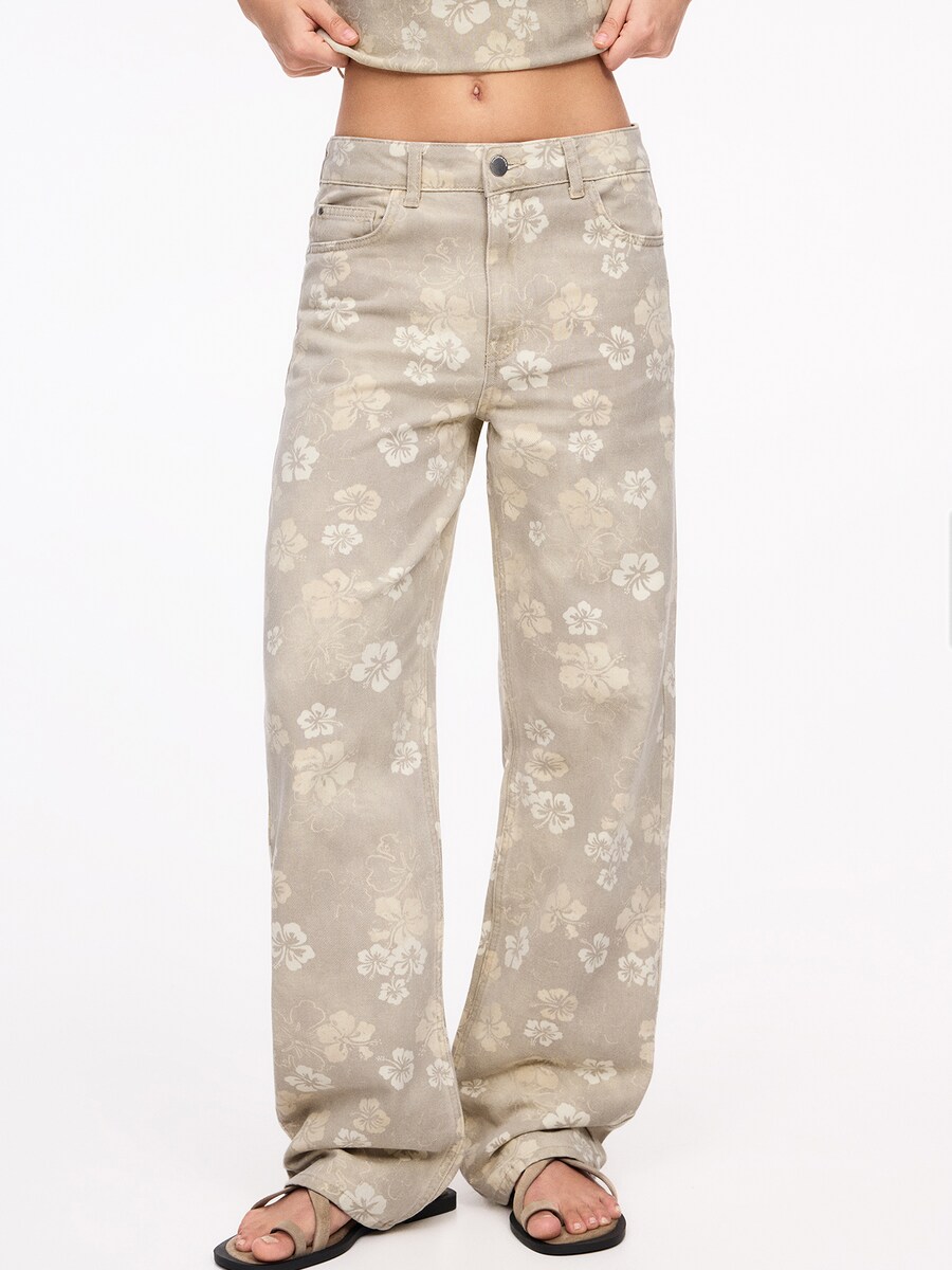 Джинсы с широкими штанинами Pull&Bear, хаки