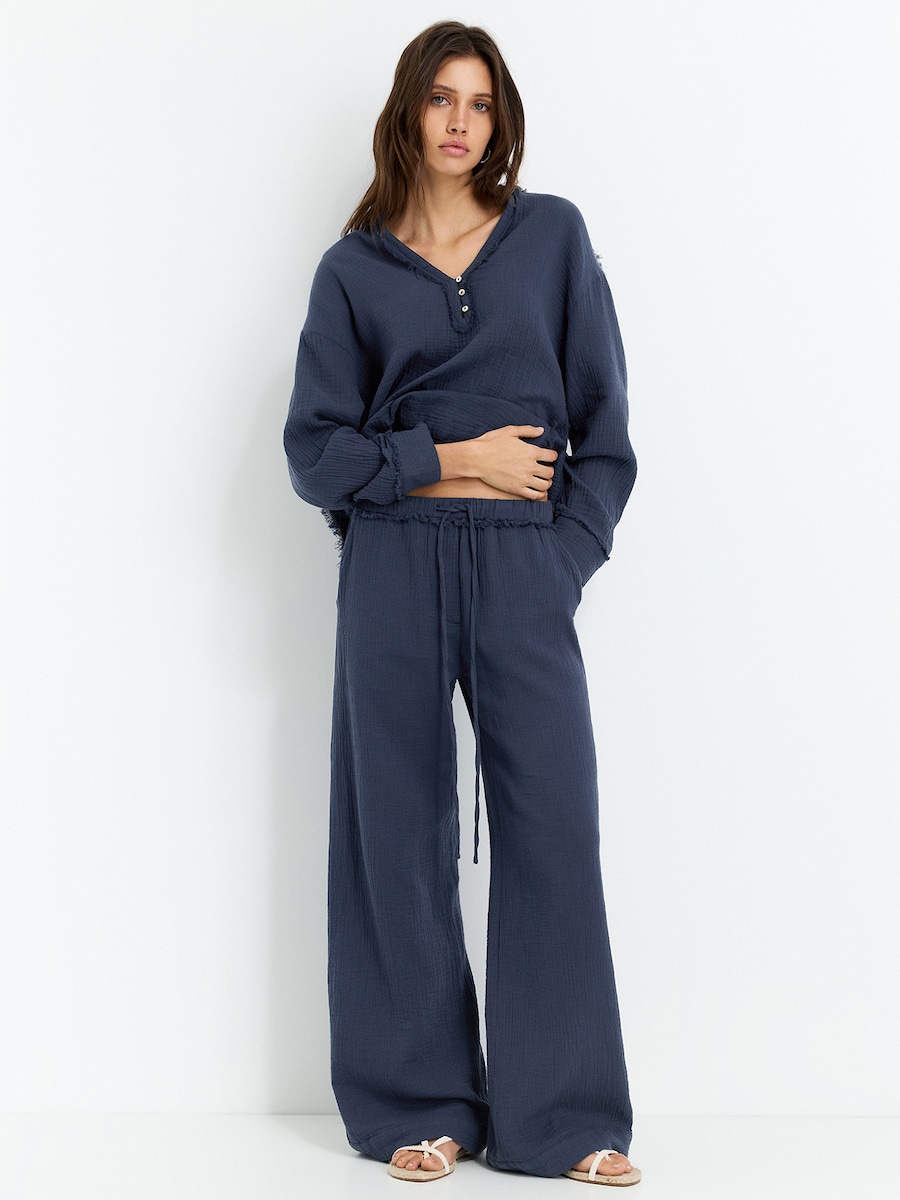 Широкие брюки Pull&Bear, темно-синий 3 942₽