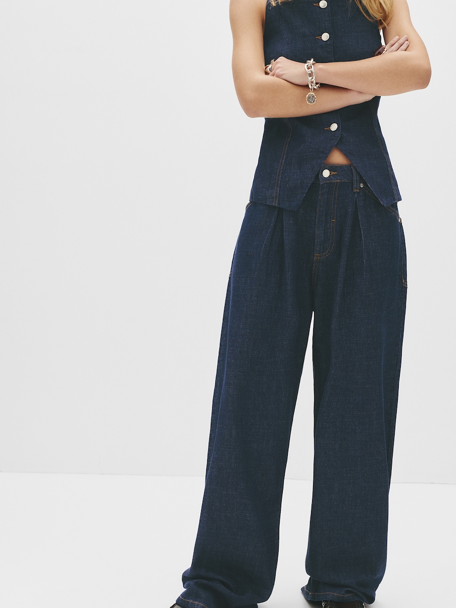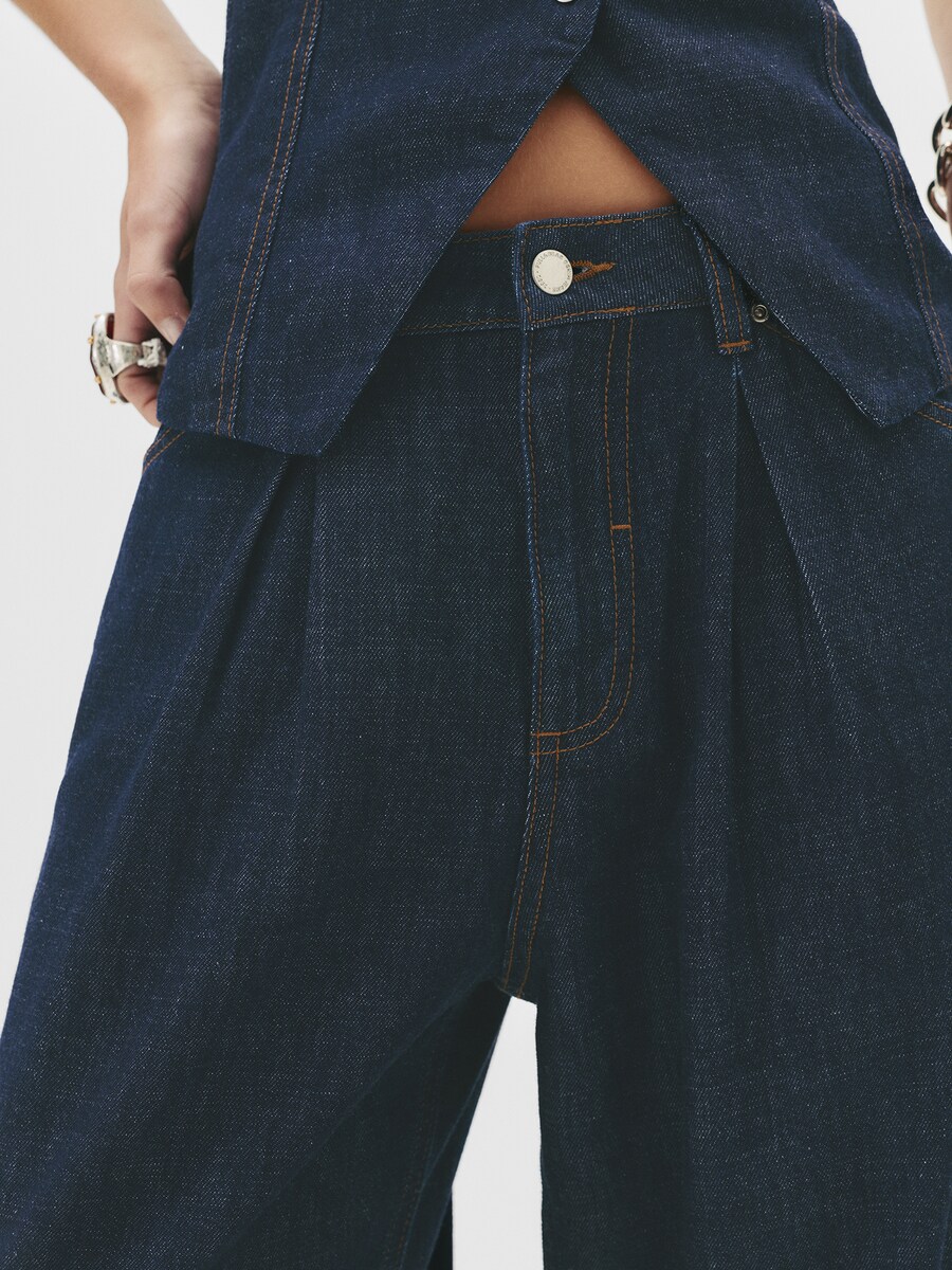Мешковатые плиссированные джинсы Pull&Bear, темно-синий 5 679₽