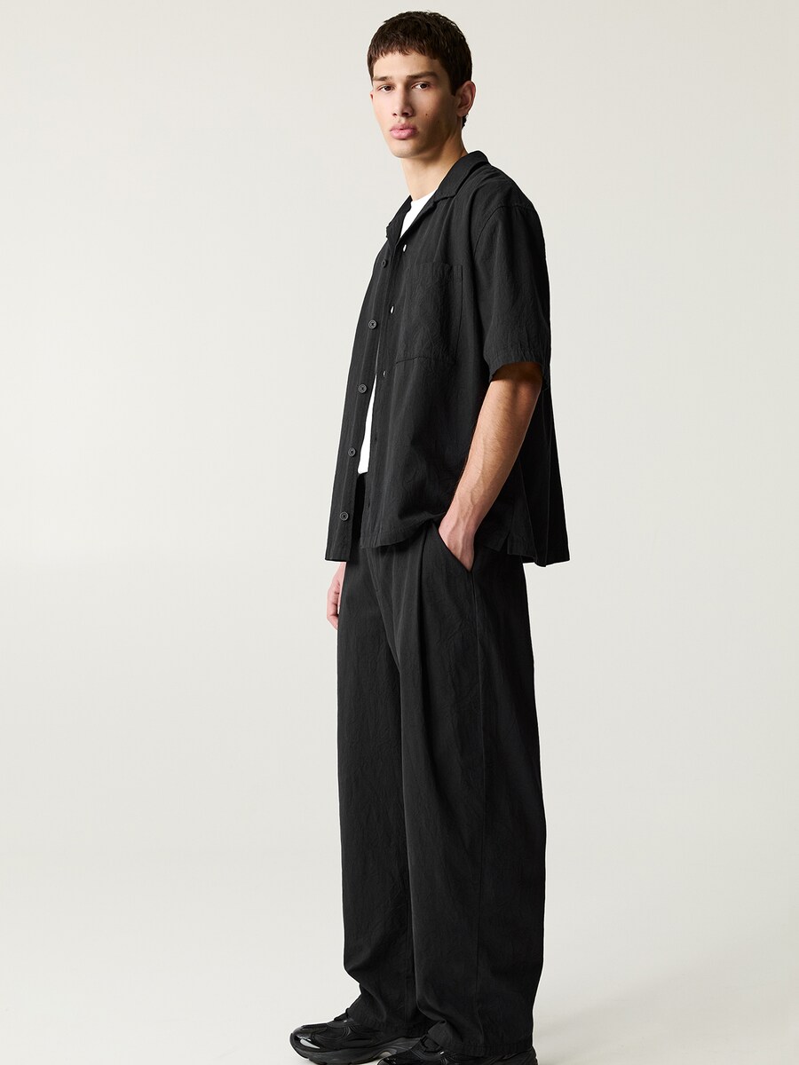 Свободные брюки со складками спереди Pull&Bear, черный