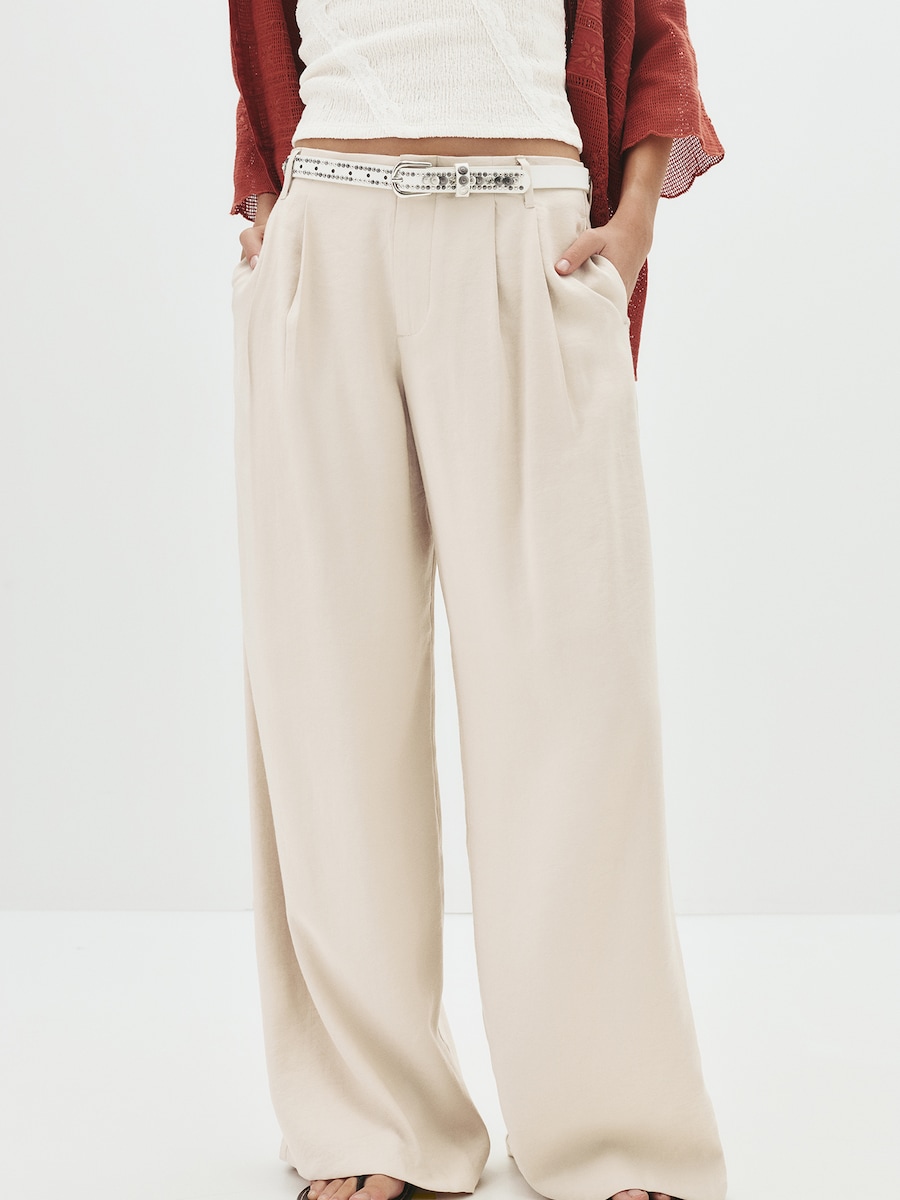 Широкие брюки со складками спереди Pull&Bear, песочный
