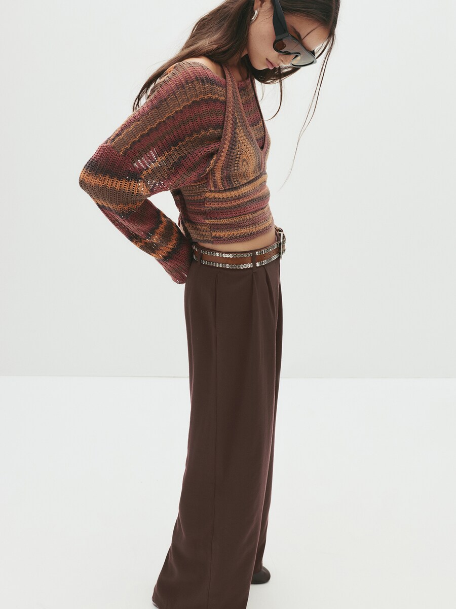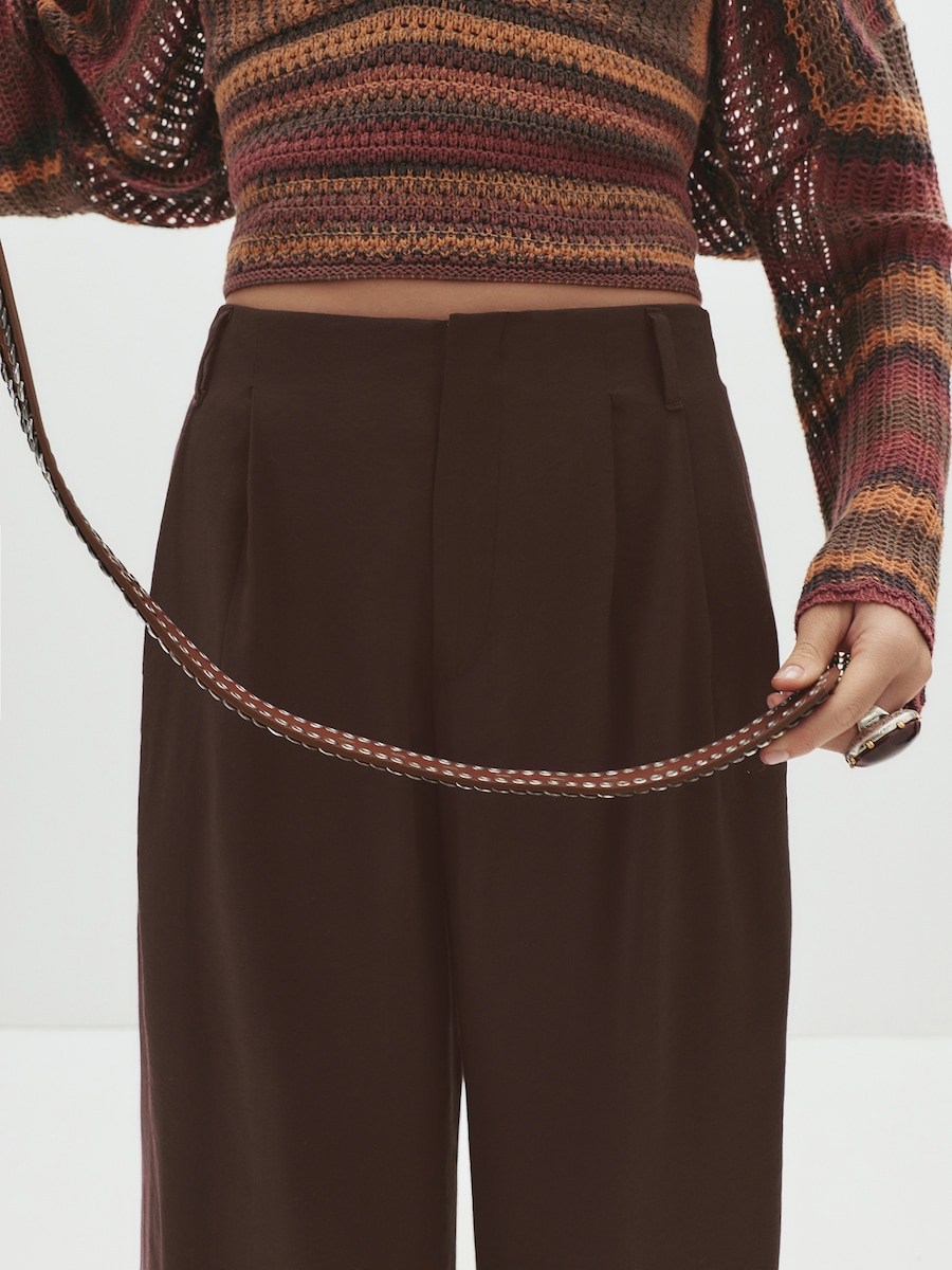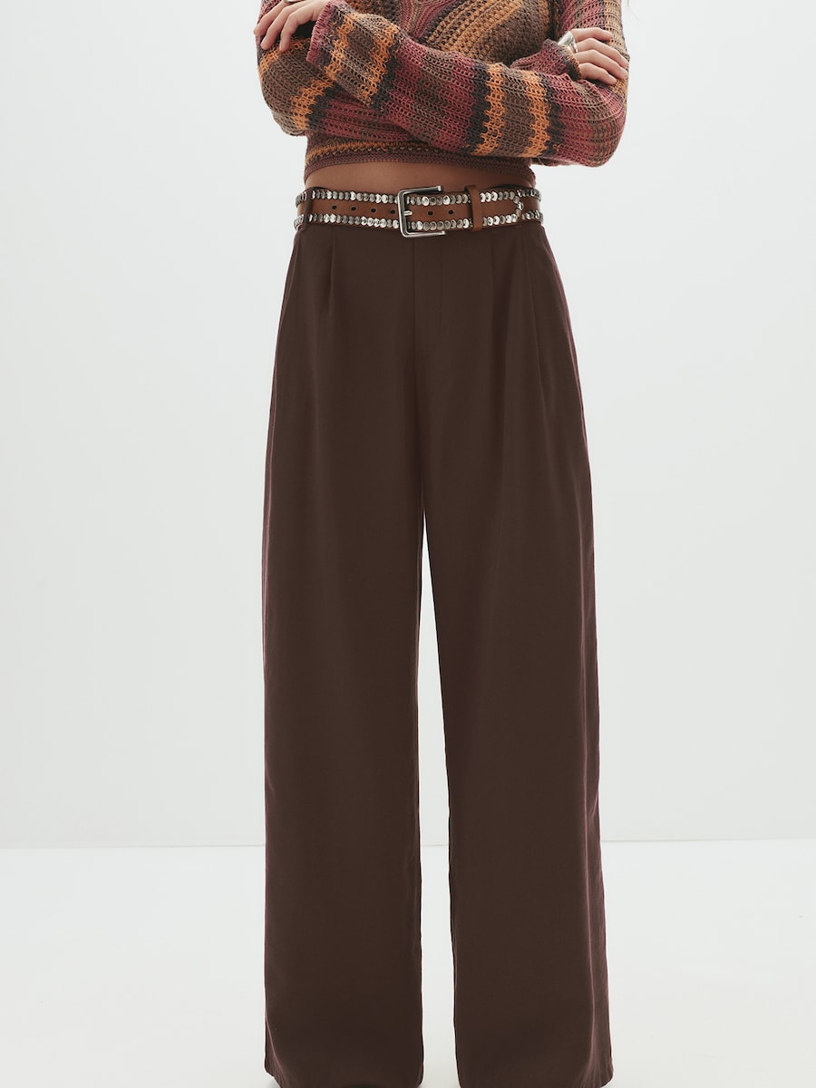 Широкие брюки со складками спереди Pull&Bear, коричневый 5 565₽