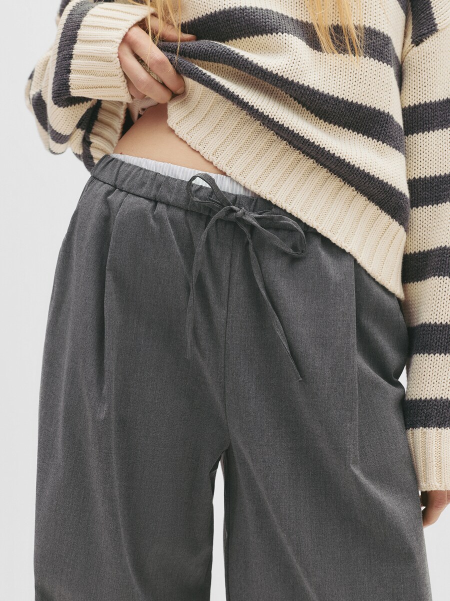 Свободные брюки со складками спереди Pull&Bear, антрацит 5 051₽