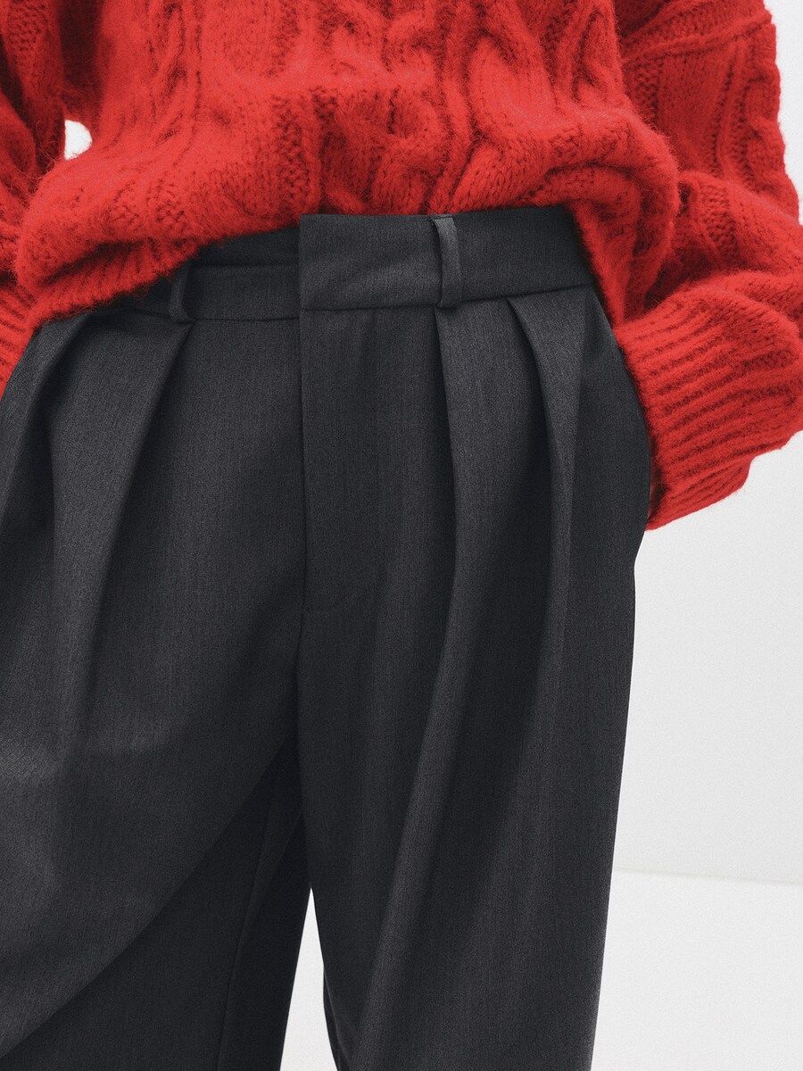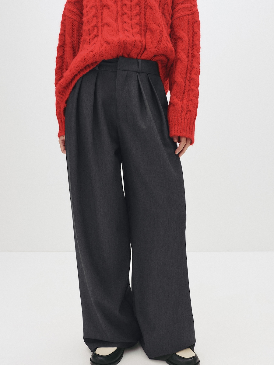 Широкие брюки со складками спереди Pull&Bear, темно-серый 5 249₽