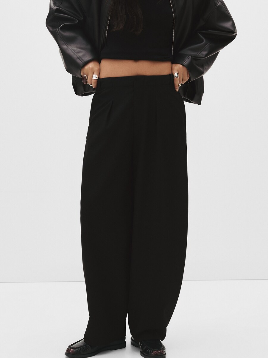 Широкие брюки со складками спереди Pull&Bear, черный 6 490₽