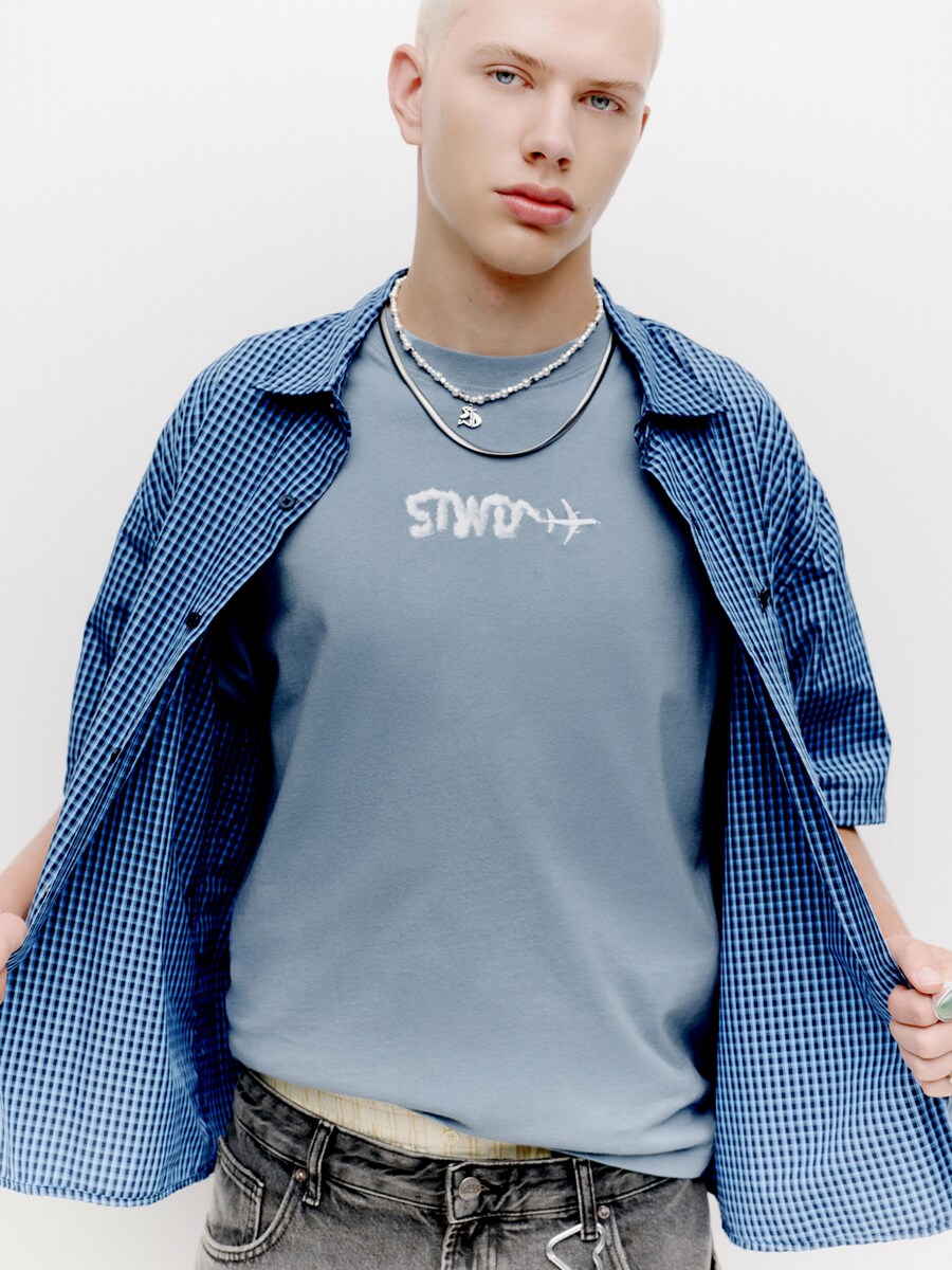 Рубашка Pull&Bear STWD, светло-голубой