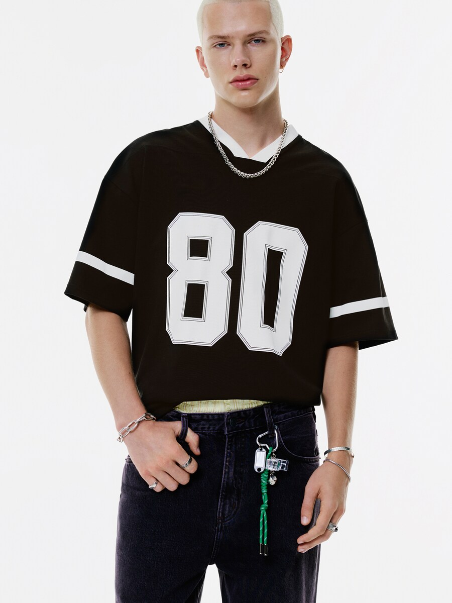 Рубашка Pull&Bear STWD PREPPY SPORT 03, черный