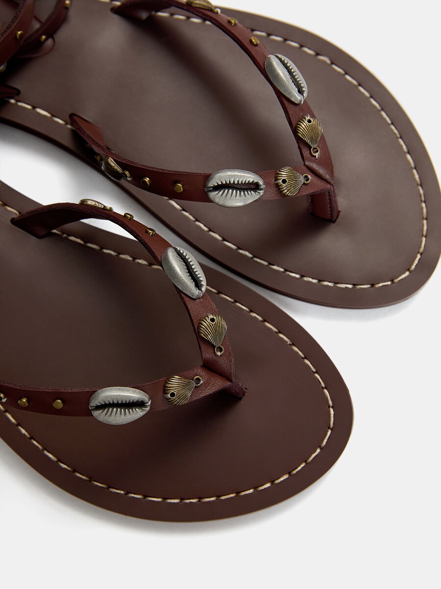 Сандалии с Т-образной перемычкой Pull&Bear, темно-коричневый 5 073₽