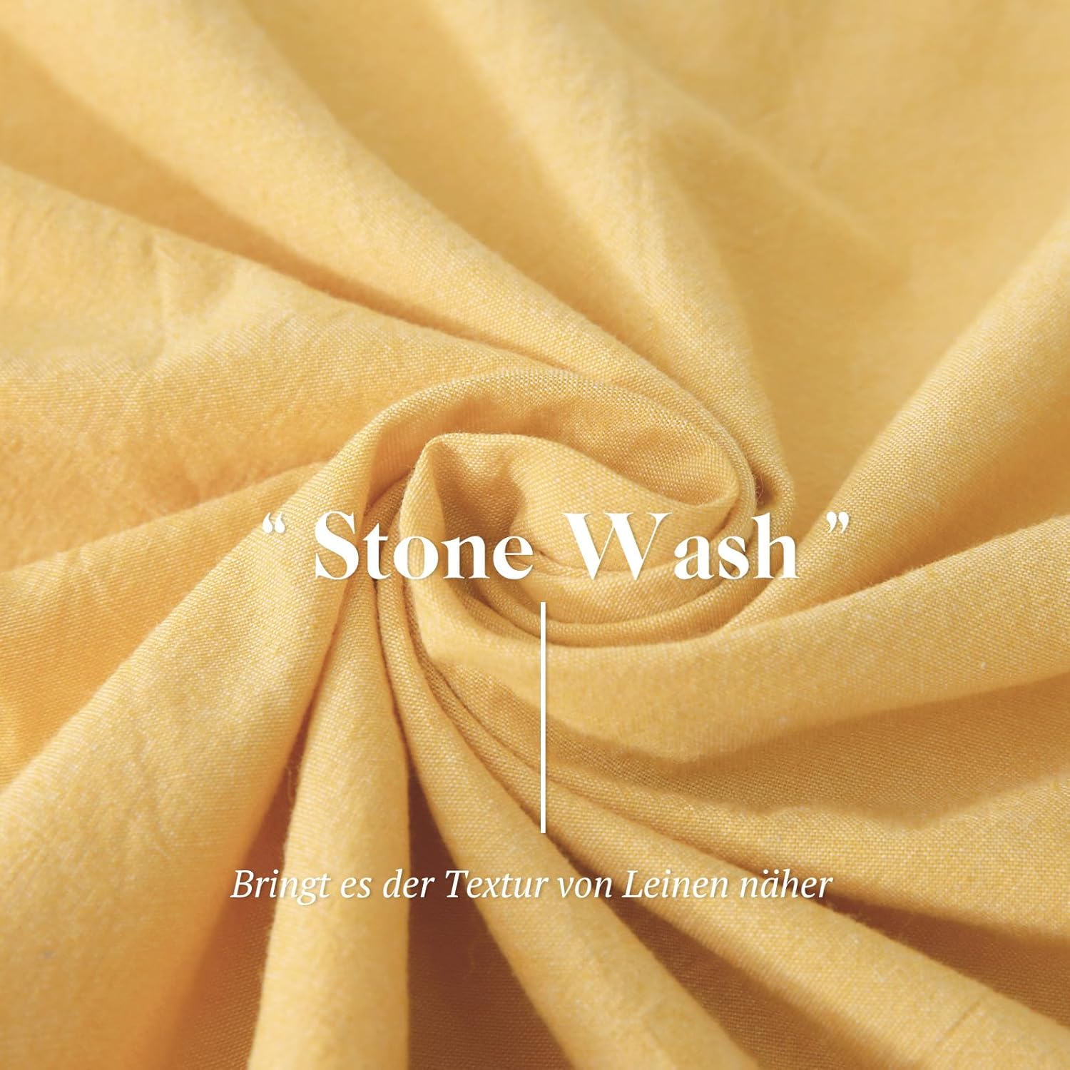 Приятное ощущение на коже: Этот комплект наволочек подвергается обработке «стоунвош», чтобы придать ему ощущение, схожее с льняным постельным бельем. Будучи таким же воздухопроницаемым, как и впитывающим, он обеспечивает особенно приятное ощущение на коже в любое время года, даже жаркими летними ночами.