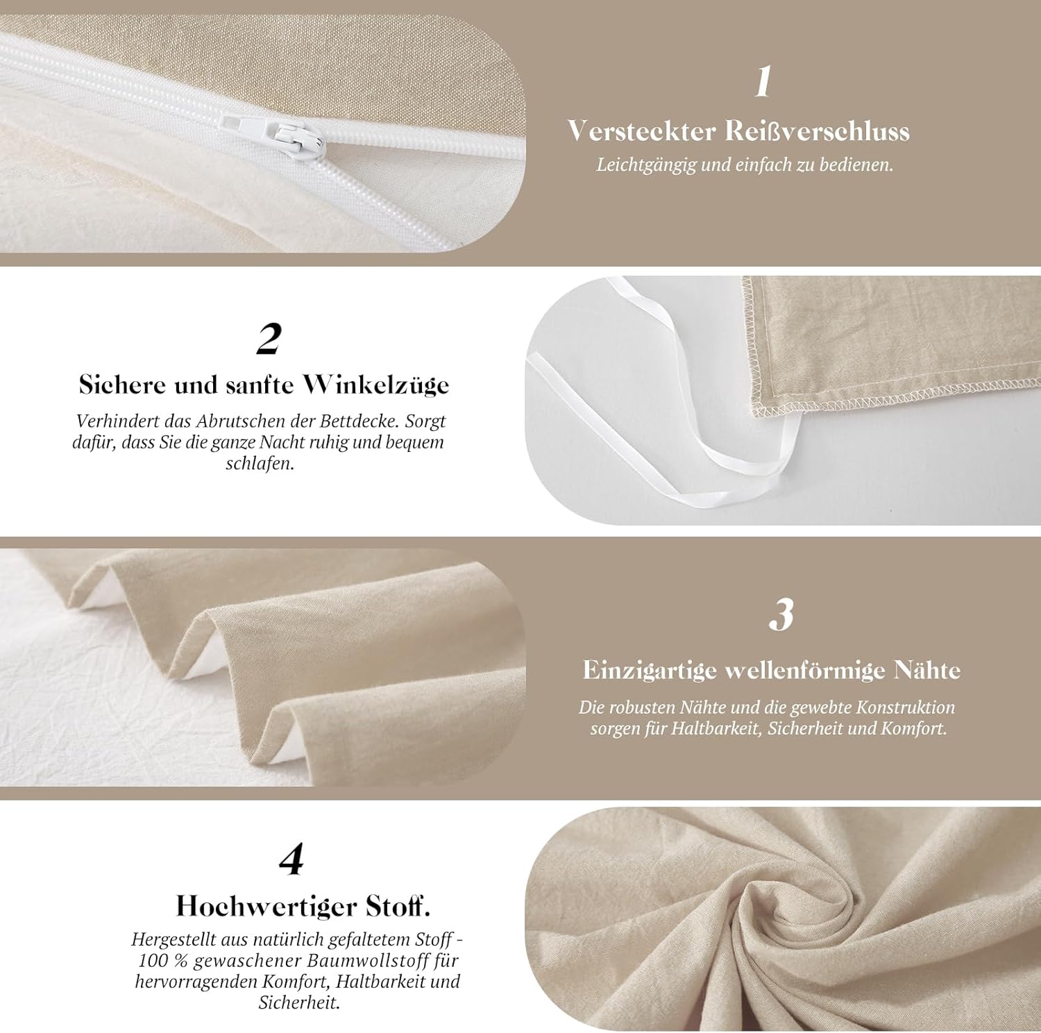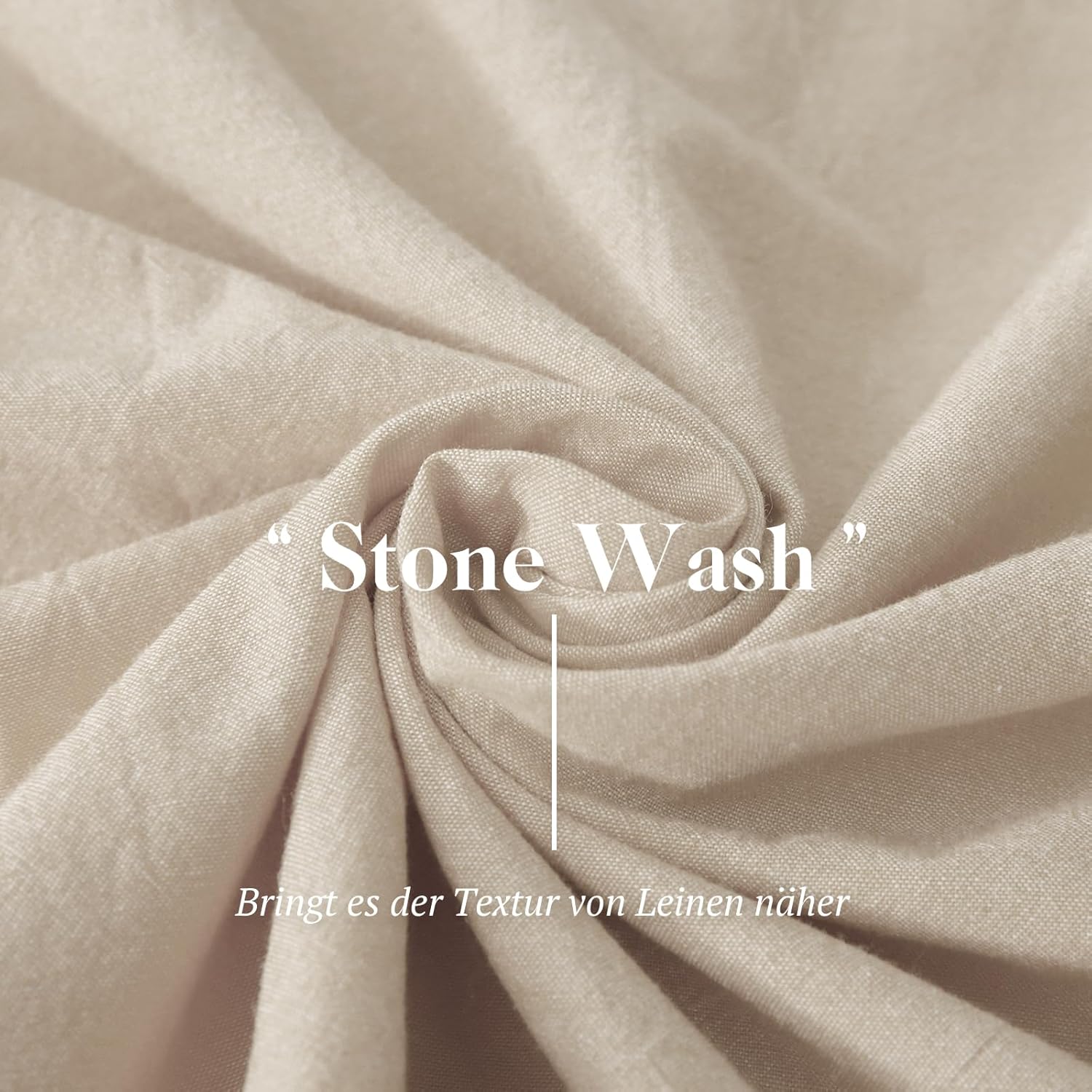 Приятное ощущение на коже: Этот комплект наволочек подвергается обработке «стоунвош», чтобы придать ему ощущение, схожее с льняным постельным бельем. Будучи таким же воздухопроницаемым, как и впитывающим, он обеспечивает особенно приятное ощущение на коже в любое время года, даже жаркими летними ночами.
