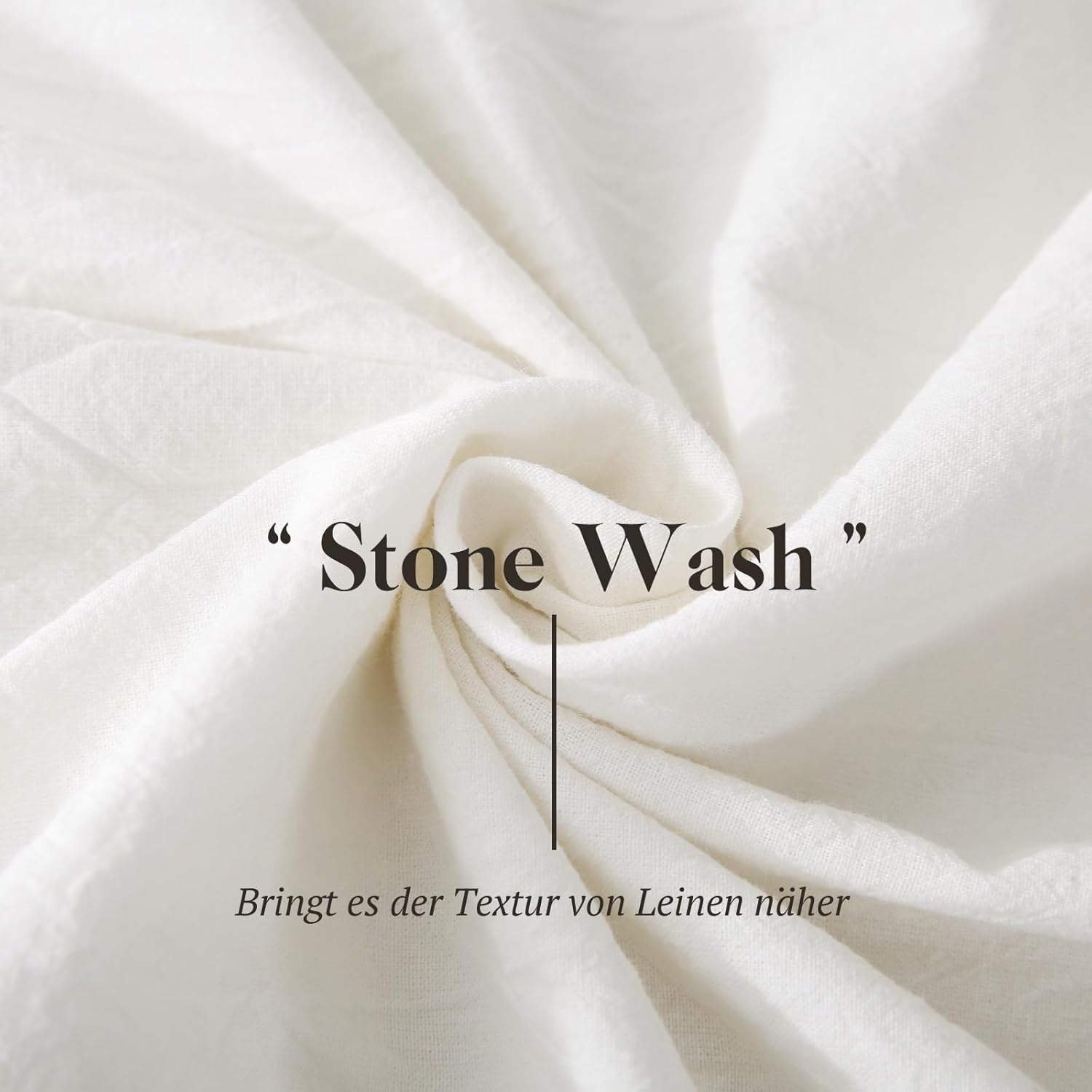 Приятное ощущение на коже: Этот комплект наволочек подвергается обработке «стоунвош», чтобы придать ему ощущение, схожее с льняным постельным бельем. Будучи таким же воздухопроницаемым, как и впитывающим, он обеспечивает особенно приятное ощущение на коже в любое время года, даже жаркими летними ночами.