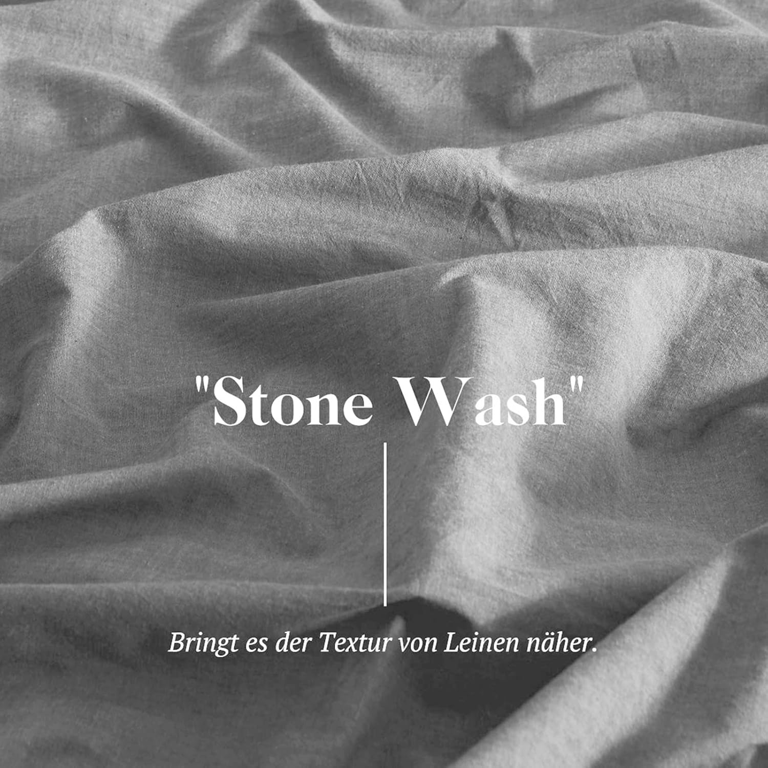 Приятное ощущение на коже: Этот комплект наволочек подвергается обработке «стоунвош», чтобы придать ему ощущение, схожее с льняным постельным бельем. Будучи таким же воздухопроницаемым, как и впитывающим, он обеспечивает особенно приятное ощущение на коже в любое время года, даже жаркими летними ночами.