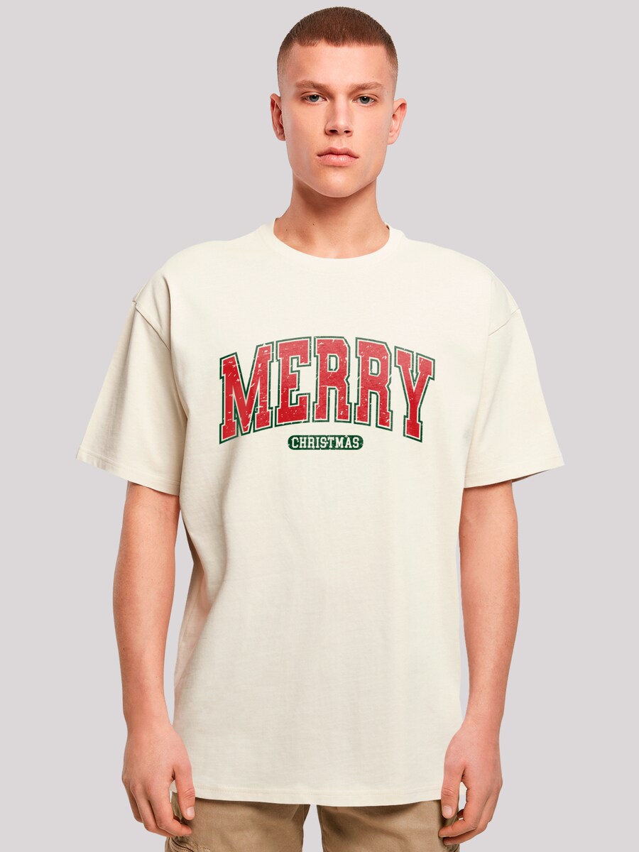 Рубашка F4NT4STIC Merry Christmas Varsity Retro, песочный