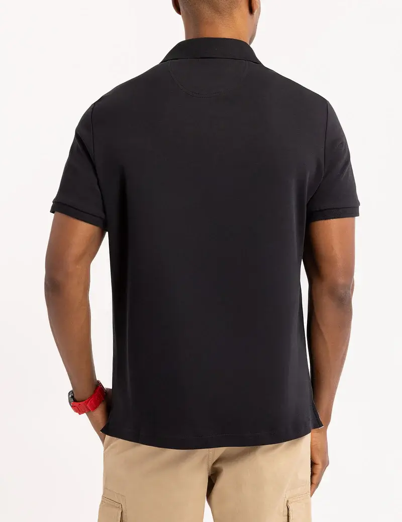 Это поло сочетает в себе повседневную практичность и продуманный стиль. Контрастная тканая отделка придаёт ему изысканный вид, а интерлоковая вязка делает изделие мягким, но структурированным — идеально для элегантных повседневных образов или элегантных выходных.