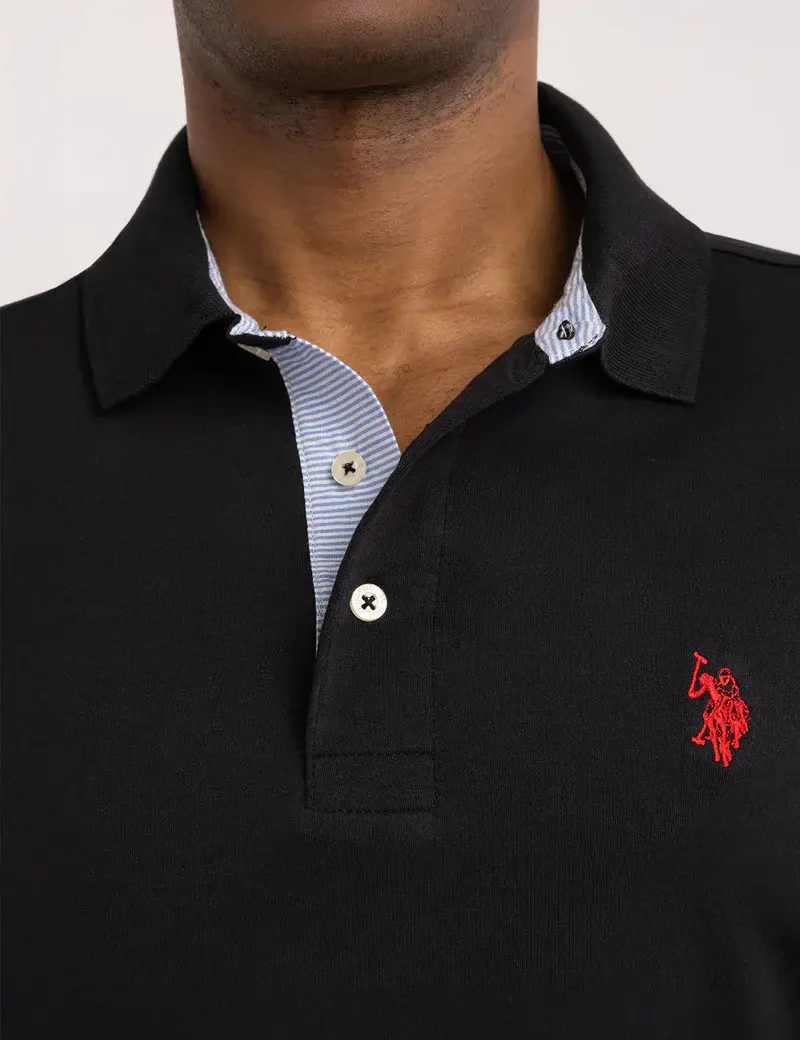 Однотонная рубашка-поло из ткани интерлок с тканой отделкой от US Polo Assn. меняет представление о базовых элементах гардероба, добавляя изысканные акценты. Эта женская рубашка-поло из 100% мягкого хлопкового трикотажа интерлок обеспечивает структурированный комфорт и предотвращает сминание. Классический воротник, планка на двух пуговицах, ребристые рукава и контрастная тканая отделка вдоль воротника и планки придают ей элегантный вид. Небольшой вышитый логотип US Polo Assn. на груди завершает образ. На модели размер M.
