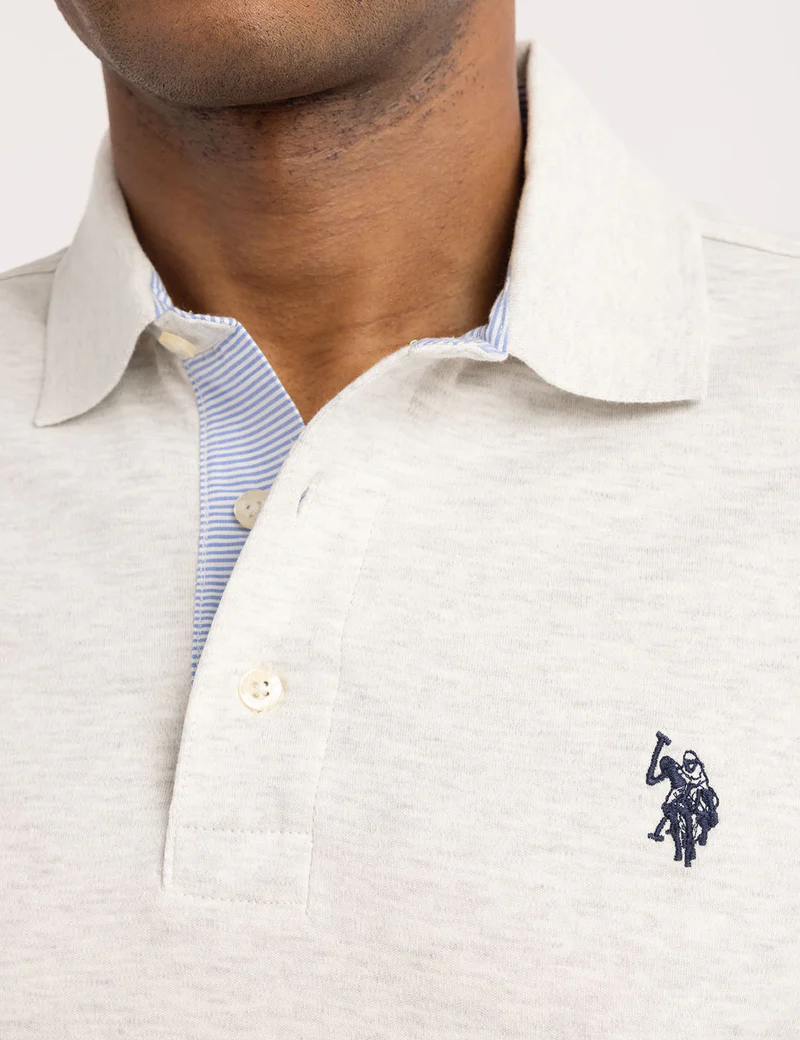 Однотонная рубашка-поло из ткани интерлок с тканой отделкой от US Polo Assn. меняет представление о базовых элементах гардероба, добавляя изысканные акценты. Эта женская рубашка-поло из 100% мягкого хлопкового трикотажа интерлок обеспечивает структурированный комфорт и предотвращает сминание. Классический воротник, планка на двух пуговицах, ребристые рукава и контрастная тканая отделка вдоль воротника и планки придают ей элегантный вид. Небольшой вышитый логотип US Polo Assn. на груди завершает образ. На модели размер M.