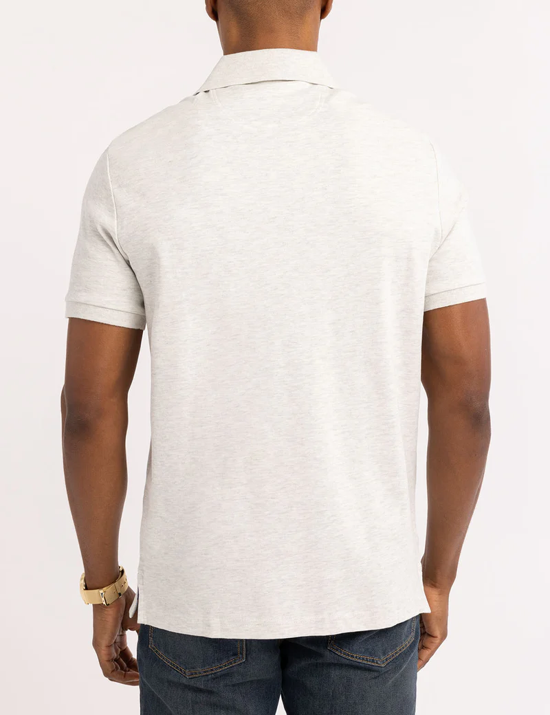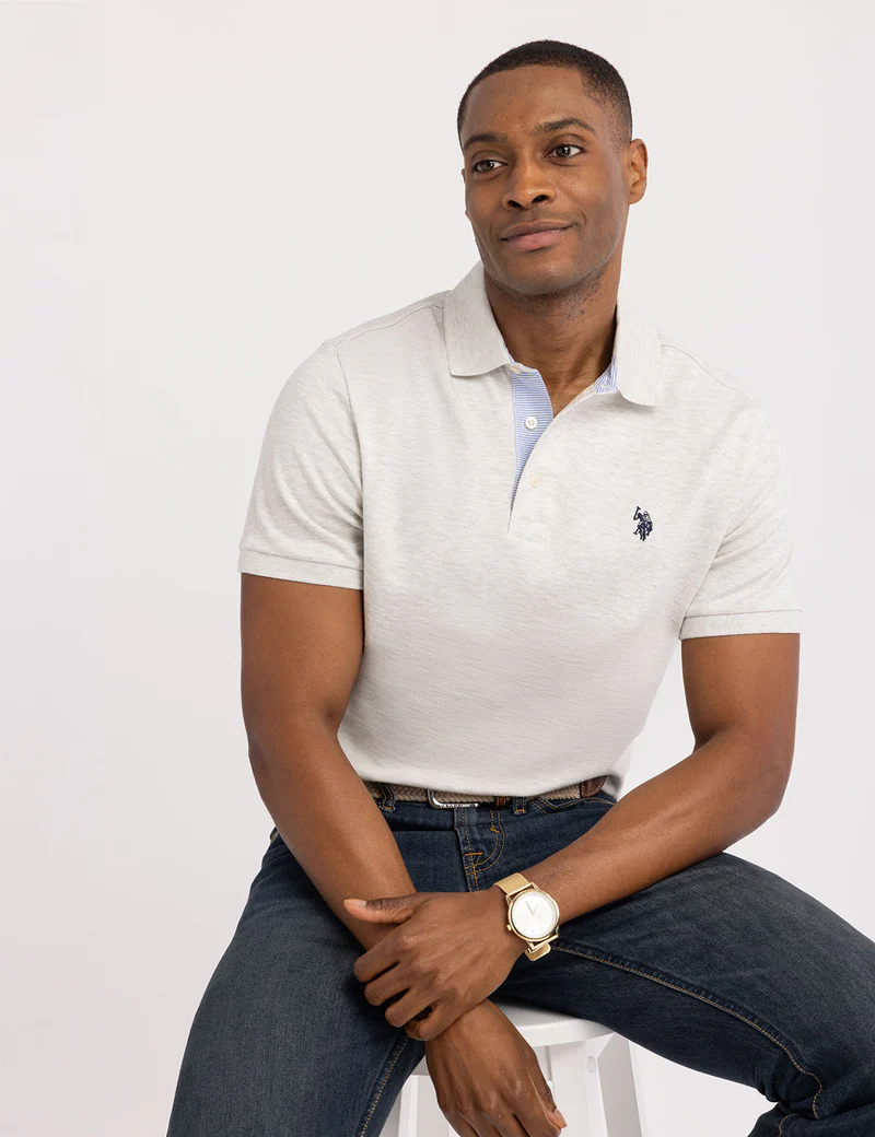 Это поло сочетает в себе повседневную практичность и продуманный стиль. Контрастная тканая отделка придаёт ему изысканный вид, а интерлоковая вязка делает изделие мягким, но структурированным — идеально для элегантных повседневных образов или элегантных выходных.