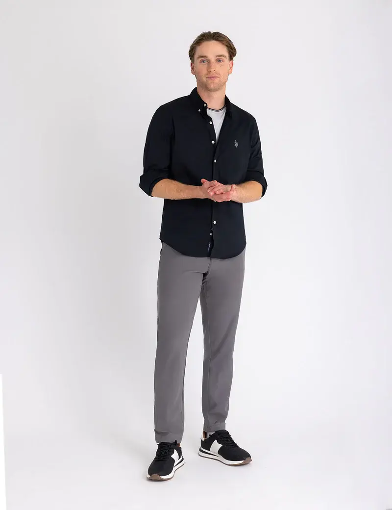 Рубашка из однотонного эластичного поплина с длинными рукавами.