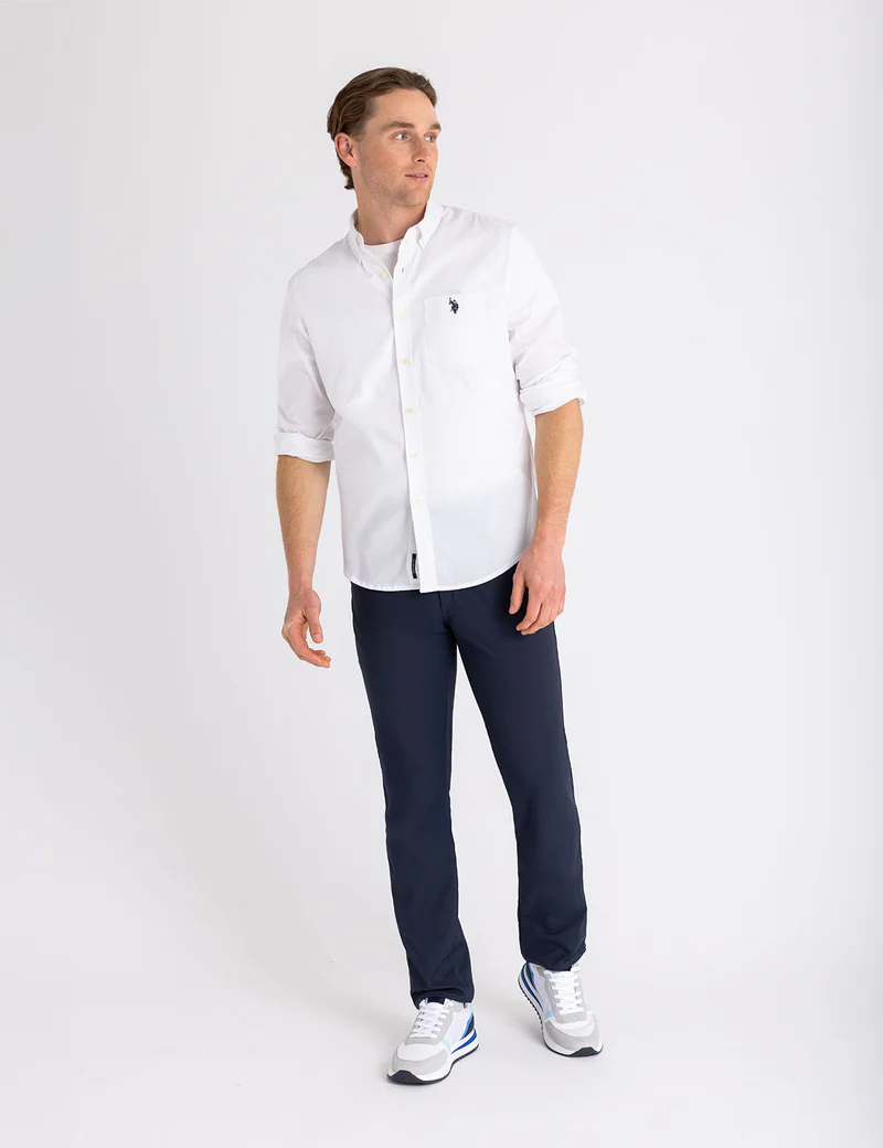 Рубашка из однотонного эластичного поплина с длинными рукавами.