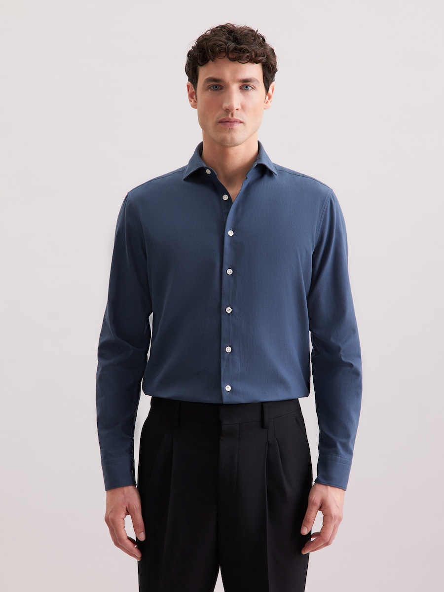 Рубашка Slim Fit на пуговицах SEIDENSTICKER, темно-синий