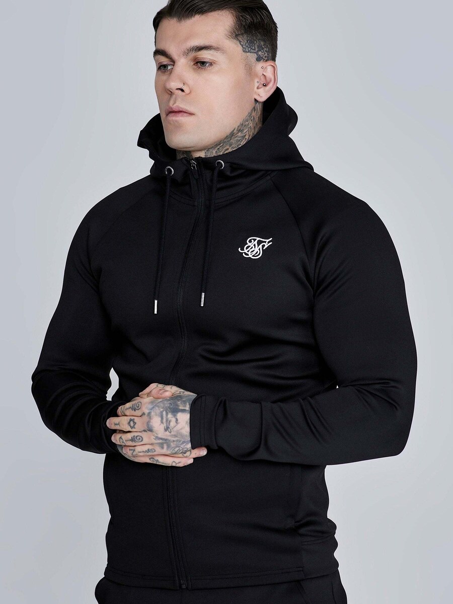 Толстовка с капюшоном на молнии SikSilk Essentials Poly FullZip Hoodie, черный