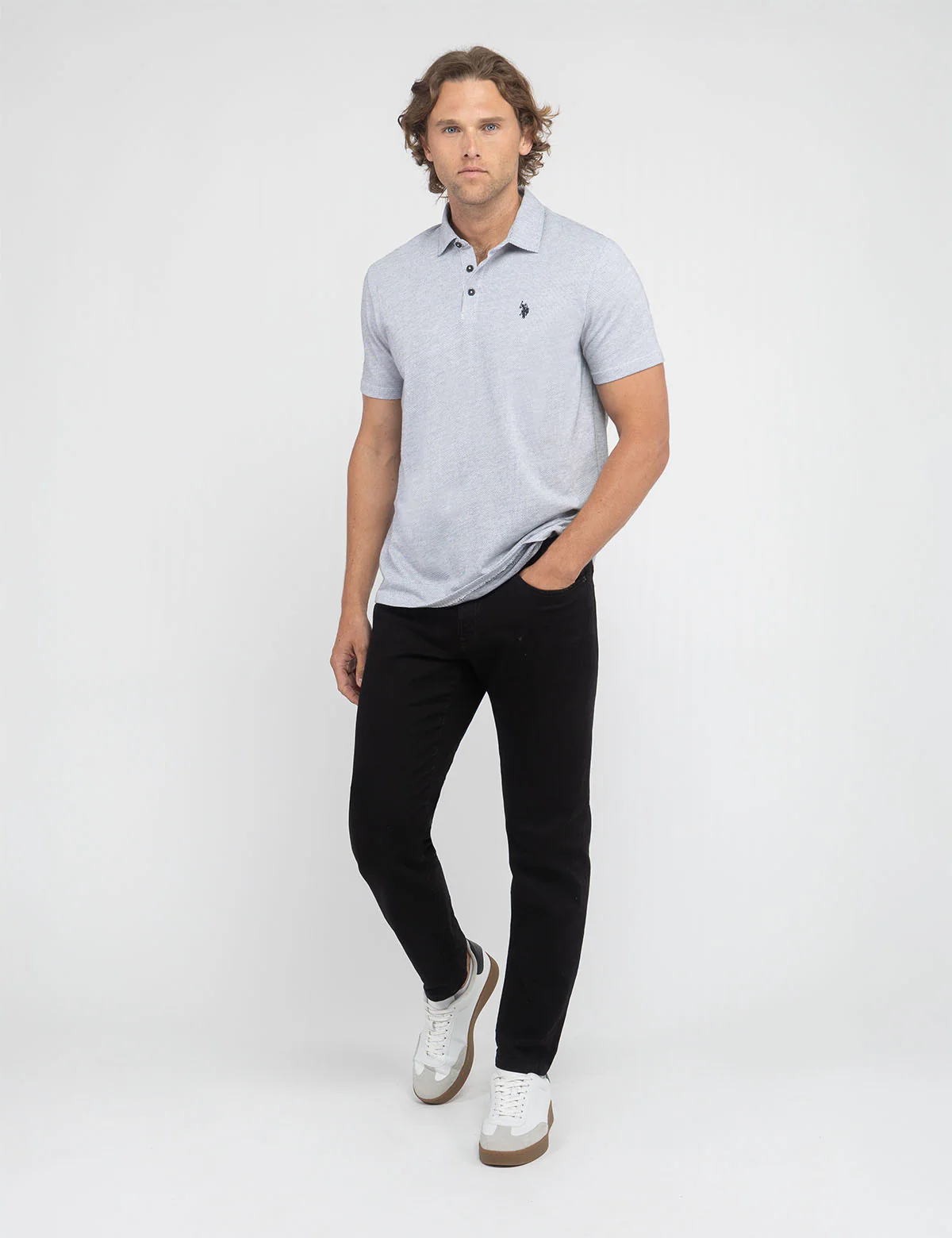 Дополните свою коллекцию поло рубашкой-поло White Label Jacquard от US Polo Assn. Эта рубашка-поло из мягкой жаккардовой ткани с лёгкой текстурой — изысканный взгляд на классическую модель. Светло-серый меланжевый оттенок, планка с тремя пуговицами и вышитый логотип на груди придают ей элегантный и универсальный вид, идеально подходящий как для повседневных, так и для полувеселых мероприятий.